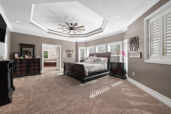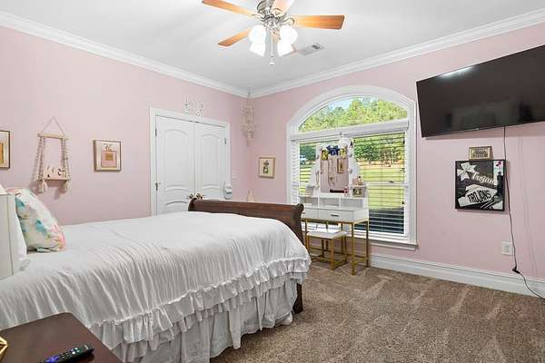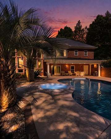 Welcome to refined living in this exceptional private estate nestled on 10.53 beautiful acres in North Baldwin County. Offering 7,291 square feet of thoughtfully designed living space, this stately brick home combines luxury, comfort, and endless entertainment. Featuring 6 spacious bedrooms and 5 full bathrooms, this home is perfect for both everyday living and hosting guests. Each bedroom offers generous space and comfort, creating a true retreat for family and visitors alike. The spacious master bedroom is complemented by dual closets, a spa inspired bath with large soaking tub, and a generous walk-in shower for ultimate relaxations. Designed for entertaining, enjoy a dedicated wet bar and pool table room, perfect for gatherings and game nights. The home also includes a private gun room and a fully equipped exercise room, providing both convenience and versatility. Step outside to your own personal oasis with a resort-style pool, ideal for relaxing or entertaining in style while enjoying the peace and privacy of your expansive acreage. This one-of-a-kind property offers the perfect blend of luxury living, serene country surroundings, and private acreage - all just minutes from town.