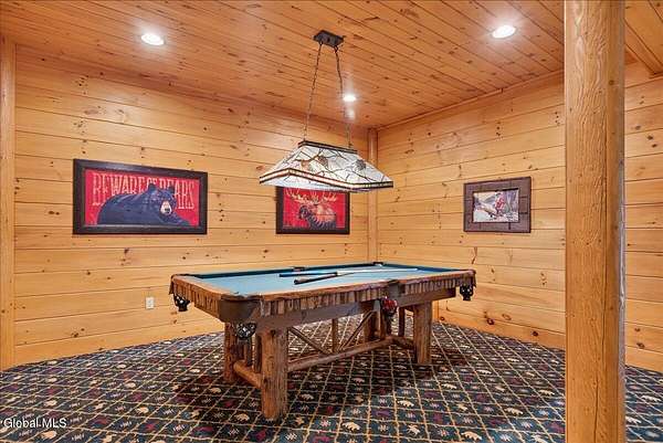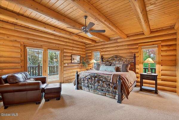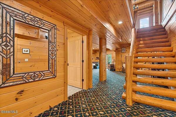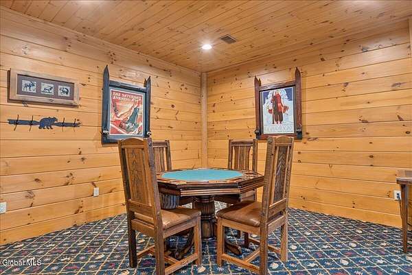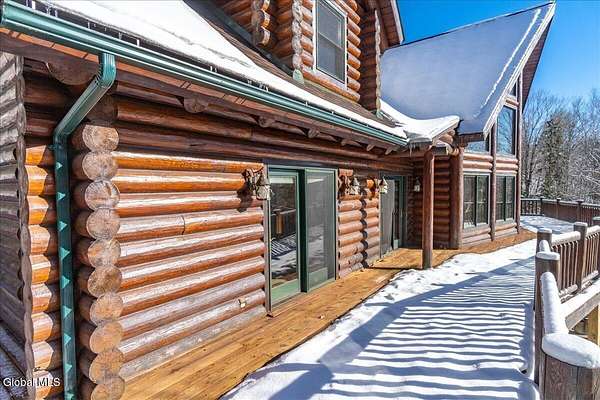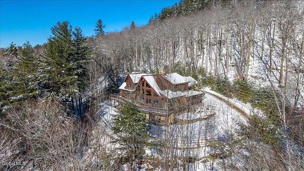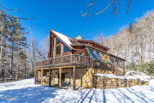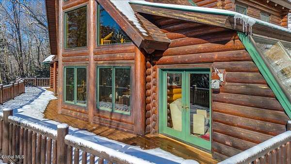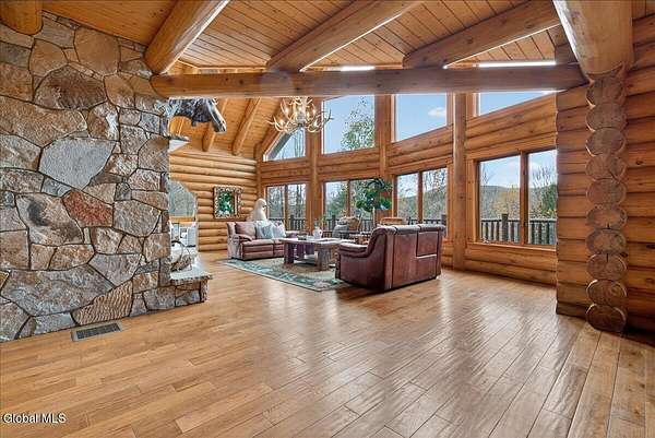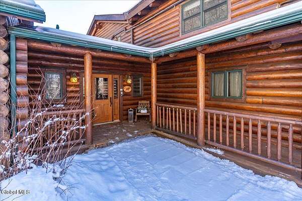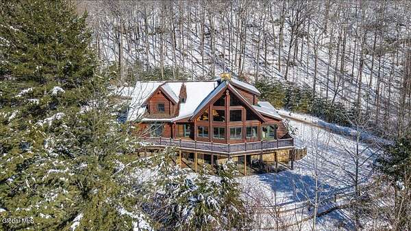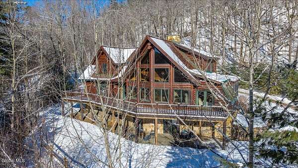 Boulder Ledge isn't just a home but...it's your Adirondack basecamp for all the good stuff: long weekends, ski season, summer escapes, and everything in between. Sold fully furnished, from the forks in the kitchen to the main living spaces. It's ready for that first Friday-night arrival with groceries, friends, and a packed car. Drop your bags, hit the sauna, pour a drink, and you're in vacation mode without lifting a finger. Inside, 5,000+ SF of custom log construction is built for gathering and spreading out: 4 bedrooms plus a den, an elevator for easy access on every level, a sauna + steam shower, and 9-zone radiant heat so every room is ''just right.'' Mornings start in the sunlit solarium with coffee and mountain light, afternoons spill onto the screened porch and nights move downstairs to the finished lower level-pool, poker, movies, and late-night laughs all in one place. The heavy lifting is done: roof, AC, and radiant pumps are already updated, so your time here is spent playing, not fixing. Set on ~10+/- acres with an additional 5+/--acre buildable parcel, you can grow into a full family compound or simply keep the extra land as your own private buffer of trees and trails. Minutes to Gore Mountain and North Creek, with proven rental history and transferable management, Boulder Ledge flexes with your life: ski winters, rent summers, or lock in year-round Adirondack living. elevator doesn't get used and being sold as is. Currently in working condition. Listing agent is related to seller