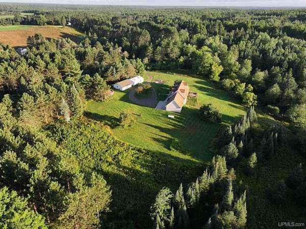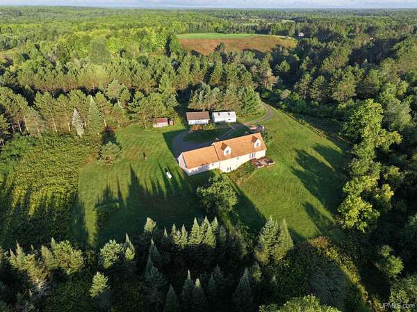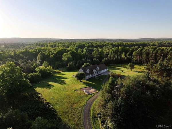 Charming Country Home on 20 Acres! This lovely country home offers the perfect blend of comfort, space, and rural charm--all nestled on 20 beautiful acres. With 4 bedrooms and 4 full baths, this home features a versatile layout ideal for a variety of lifestyles. Enjoy an open-concept main level with a bright and airy kitchen complete with a large island, newer appliances, hardwood floors, and ceramic tile throughout the kitchen, dining, and living areas. The main floor offers 2 bedrooms and 2 baths, while the upper level hosts a private master suite with a gas fireplace, full bath and a separate spacious open area perfect for a family room, home office, or relaxation zone. The lower level includes a bedroom and additional full bath, providing great guest or in-law potential. There is also a kitchen setup with appliances. The lower level has a fireplace and doors to the outside and heated floors. This home has combination locks on the doors, an outdoor security system and electric fire detectors. An attached 2-car garage and a separate detached garage and additional building (which was a workshop) offers plenty of space for storage, hobbies, or equipment. The outdoor wood stove is tied into the propane furnace for an additional heat source. The wood that is piled will stay. The 20 acre parcel adjoins the Miner's 9 Golf Course but the acreage is wooded for privacy. This home is about 8 minutes from Ski Brule Ski Resort. Our pristine lakes are within 10 to 15 minutes away. The Brule River is a Blue Ribbon Trout Stream which can be accessed in 10 minutes, where you can enjoy canoeing, kayaking and fishing. You can enjoy your favorite sport whether it is deer hunting, grouse or turkey on the private 20 acres. This is a very private location with no visible neighbors, on a quiet, rural road. The location is ideal for enjoying all of the amenities in Iron River which is only 3 miles away. Close to shopping, restaurants, West Iron County school and Aspirus Hospital and Clinic. Whether you're looking for privacy, functionality, or room to roam, this home has it all!