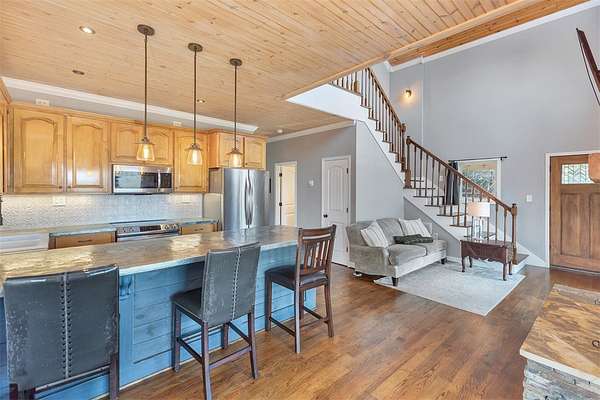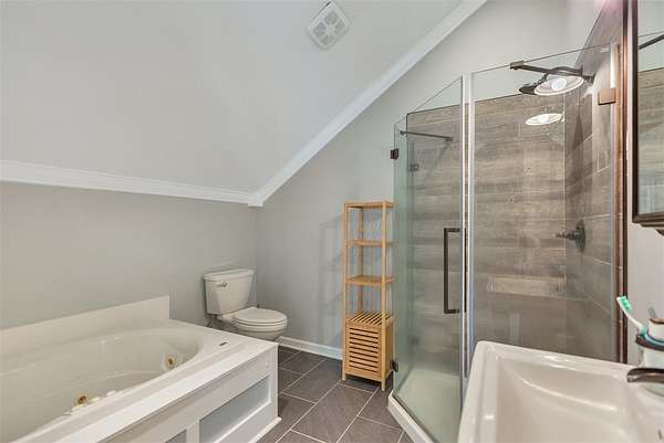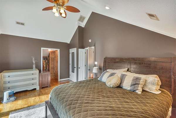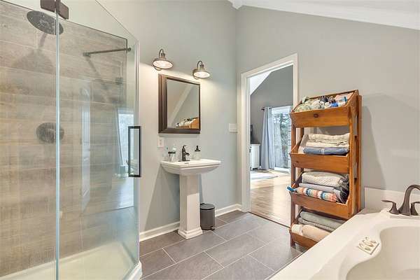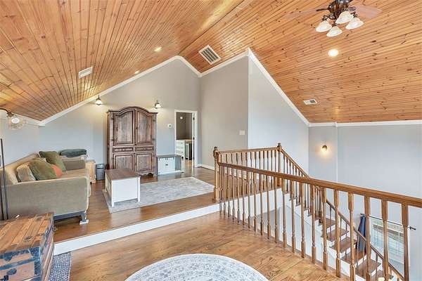 - Bath In Primary Bedroom, Breakfast Area, Cathedral Ceilings, Ceiling Fans, Entrance Foyer, Fireplace, Garden Tub Roman Tub, High Ceilings, Jetted Tub, Smooth Ceilings, Solid Surface Counters, Upper Level Primary, Walk In Closets, Walk In Shower