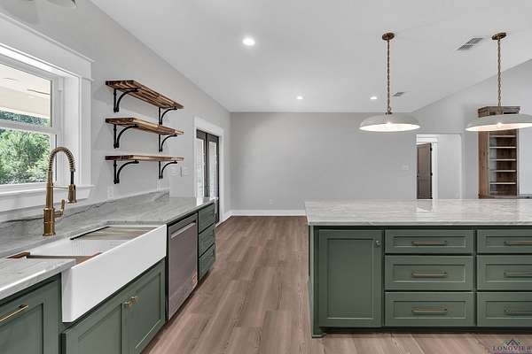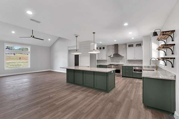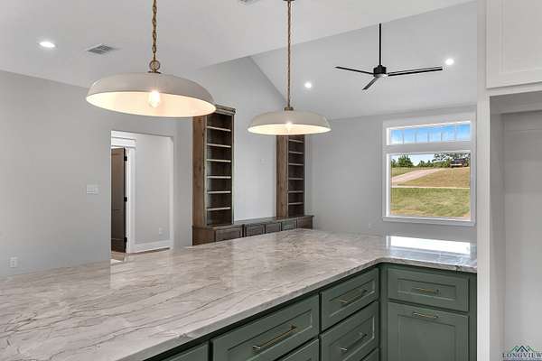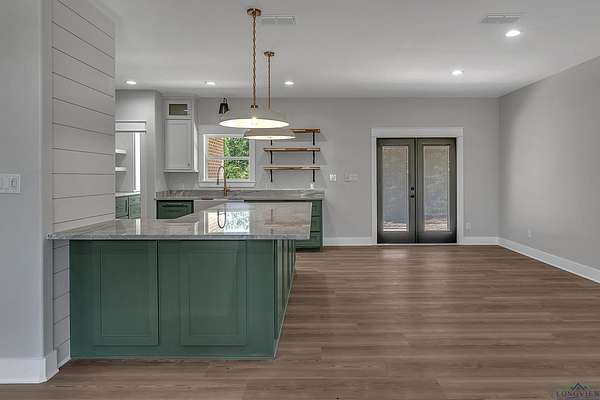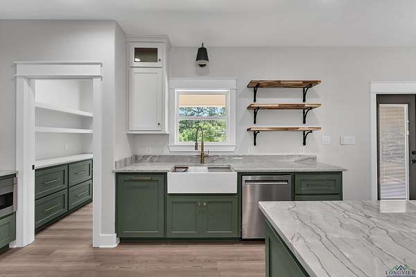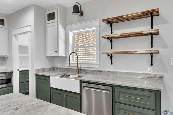 Tucked just past the quiet edge of town--where big skies and fresh air greet your mornings--this brand-new Sabella Construction home pairs modern design with country calm on a wooded 2-acre corner lot. Follow the curved concrete drive to a timeless brick-and-stone facade and step into sun-drenched living: an oversized picture window, cathedral ceilings, warm flooring, and custom built-ins that frame an easy, elegant gathering space. The kitchen is the heartbeat--granite-topped island with pendant lighting, farmhouse sink, professional KitchenAid range, designer cabinetry, open shelving, and a hidden butler's pantry deep enough to stash a second fridge or freezer. The private primary suite impresses with two oversized closets and a spa bath featuring a walk-in shower with matte-black fixtures, soaking tub, and solid-surface vanities. Two additional bedrooms flex for guests, office, or hobbies--each with clever storage--and a versatile utility room keeps daily life running smoothly. Outside, a covered back patio is grill- or outdoor-kitchen-ready, and the insulated garage plus whole-home spray foam boost efficiency. A 330-amp meter box future-proofs your plans--think shop, RV, pool, or guest suite. Backed by trees and brimming with potential, the land invites gardens, play, or a future fire pit--all just minutes from schools, groceries, and dinner out. This isn't just a new build; it's a thoughtful lifestyle upgrade where craftsmanship still matters. See it in person--schedule your private tour today.