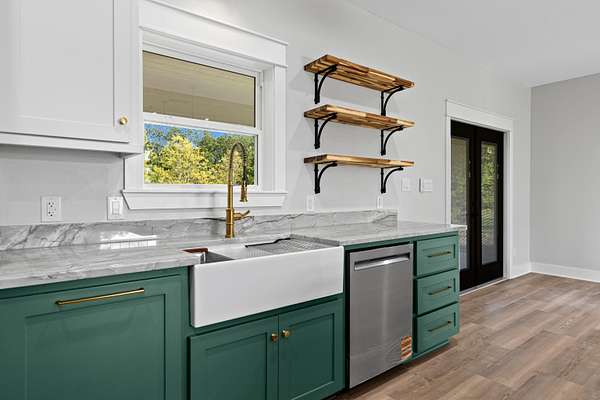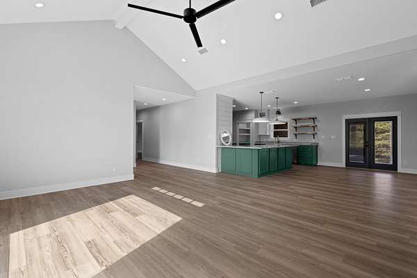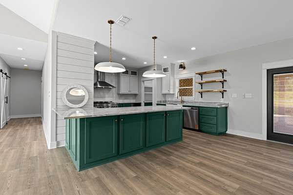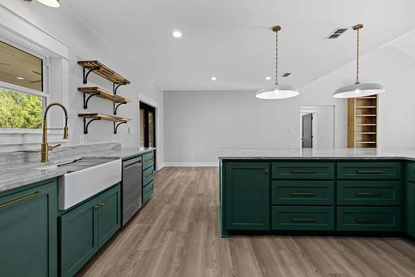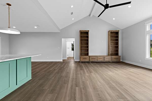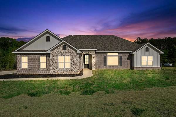 Tucked just beyond the peaceful edge of town—where wide-open skies and fresh morning air set the tone for your day—this brand-new Sabella Construction masterpiece blends modern luxury with quiet country living on a wooded 2-acre corner lot. A curved concrete drive leads you to a striking brick-and-stone exterior, hinting at the craftsmanship inside. Step through the door and into a sunlit living space defined by soaring cathedral ceilings, an oversized picture window framing the treetops, warm flooring, and custom built-ins that make the room both elegant and effortless. At the heart of the home, the kitchen shines: a granite-topped island with pendant lighting, farmhouse sink, professional KitchenAid range, designer cabinetry, open shelving, and a hidden butler’s pantry spacious enough for a second fridge or freezer. The private primary suite is a true retreat, offering two oversized closets and a spa-inspired bath with a walk-in shower featuring matte-black fixtures, a soaking tub, and solid-surface vanities. Two additional bedrooms flex easily for guests, office space, or hobbies—each thoughtfully designed with smart storage. A versatile utility room keeps daily life organized and out of sight. Out back, a covered patio is ready for grilling or a future outdoor kitchen, while the insulated garage and whole-home spray foam elevate comfort and efficiency. A 330-amp meter box gives you room to dream—add a shop, RV setup, pool, or guest suite with confidence. The wooded acreage invites gardens, play spaces, or a cozy fire pit under the stars. Just minutes from schools, groceries, and local dining, this property offers the rare blend of convenience, privacy, and intentional design. This isn’t just a new build—it’s a lifestyle upgrade crafted with care and built to last. Schedule your private tour today and experience it for yourself.