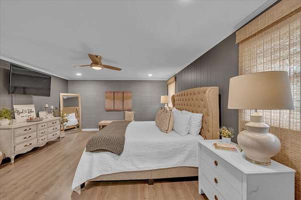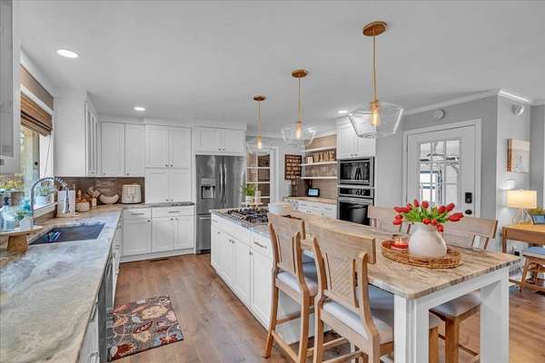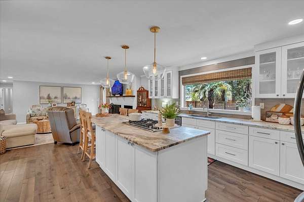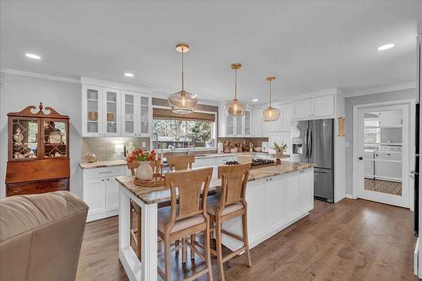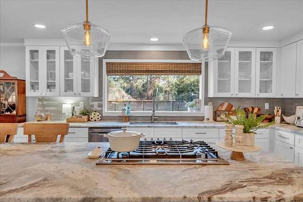 Completely Remodeled in 2017 this 3bed/ 2bath home in Dixie Hills on 1.5 +/-acres looks NEW! Over 4000 total sq. ft., the open layout connects the living/dining/kitchen areas with a stylish half bath. Beautiful floors all over, wood burning fireplace, neutral colors, & large windows for natural light. The state-of-the-art kitchen has quartz countertops, gas stove, stainless steel appliances, & lovely lighting. Custom laundry area for organizing with a water softening system. The primary suite was repainted, has a soaking tub, tiled shower, & huge closet. Privacy fence,deck, dbl. garage, & more