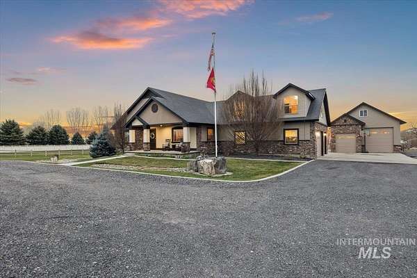 Welcome to this extraordinary custom-built estate at 125 E. 50 N. in Jerome, Idaho, where luxury, privacy, and breathtaking South Hills views come together on 2.12 beautifully landscaped acres. This 6,574 sq. ft. home features 7 bedrooms, 5 bathrooms, expansive living spaces, custom craftsmanship, and generously sized rooms designed for both everyday living and entertaining. The flexible floor plan is ideal for multigenerational living, offering comfort and privacy for extended family or guests. Outside, enjoy mature landscaping, fruit trees, an outdoor living space with firepit area, usable acreage, and room for gardening or animals. In addition to the attached 3-car garage, the property includes an oversized shop with potential for a loft apartment, guest quarters, hobby space, or additional storage. With 3 shares of water, stunning scenery, and close proximity to town, this one-of-a-kind property offers the perfect blend of country living and convenience.