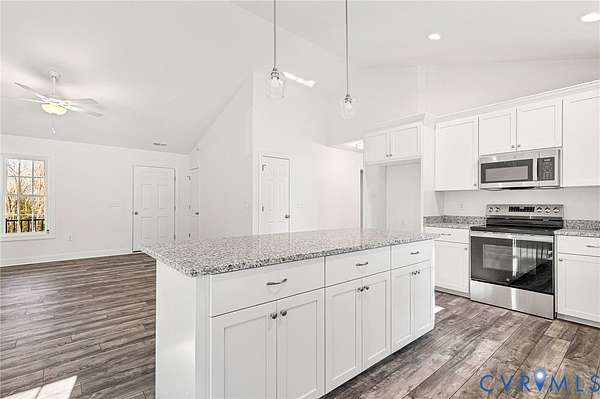 Move-in ready, 100% complete new construction on over 4 acres! SUPER Convenient just 3 minutes from town! This 3-bedroom, 2-bath home with a dedicated office features a desirable split-bedroom floor plan for added privacy and an open-concept layout from the family room to the kitchen, highlighted by soaring vaulted ceilings. The kitchen offers crisp white cabinetry, granite countertops, stainless steel appliances, and a large island perfect for entertaining. The spacious primary suite includes a massive walk-in closet and a private bath with a double-bowl vanity. The hall bath also features a double-bowl vanity with tub/shower combo. Two additional generously sized bedrooms are located on the opposite side of the home. Enjoy peaceful country living with plenty of room to expand, or simply relax on your 4+ acre property.