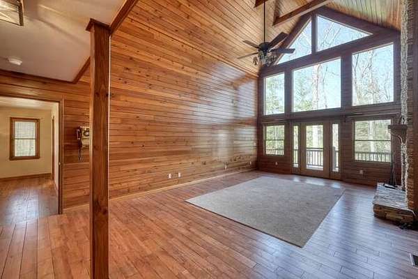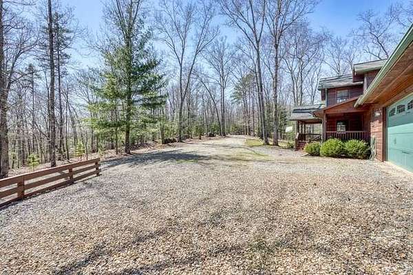 Tucked away on 6 private, usable acres in the mountains of Murphy, this well-built home offers the ideal blend of privacy, space, and functionality in a quiet, established setting. Step inside the formal entry and into a striking main living area defined by soaring tongue-and-groove wood ceilings and walls, anchored by a floor-to-ceiling stacked stone wood-burning fireplace that brings warmth and character to the entire space. The layout flows effortlessly into a spacious kitchen designed for real living, featuring abundant cabinetry, a breakfast bar, and easy connection to a formal dining room—ideal for gathering and entertaining. The main-level primary suite includes a walk-in closet and bath with double sinks, clawfoot tub, walk-in shower, and private water closet. A large laundry room, oversized half bath with pantry space, and great storage throughout add everyday convenience. Outdoor living stands out with a full-length covered back porch featuring its own wood-burning fireplace, plus an open deck and outdoor firepit—perfect for enjoying the peaceful surroundings. For buyers needing serious garage and workspace, this setup is hard to beat—offering an attached 3-car garage plus an oversized 2-car detached garage with workshop space. Whether for hobbies, storage, or projects, the flexibility here is a major advantage. The finished terrace level offers a large family room, game room, full bath with double sinks and walk-in shower, and a flexible den or office space. Upstairs, a library or sitting area connects two spacious bedrooms—both true ensuite suites with private baths and large closets, ideal for guests or extended family. Additional features include a tankless water heater, water filtration system, high-speed internet, and a quiet neighborhood. Offered at $769,800, this property delivers space, privacy, and versatility rarely found in today's market. An additional 2-acre parcel is available for purchase.