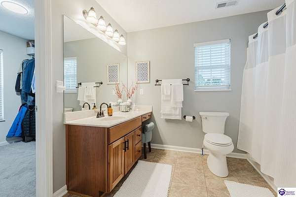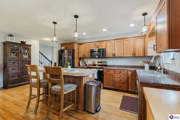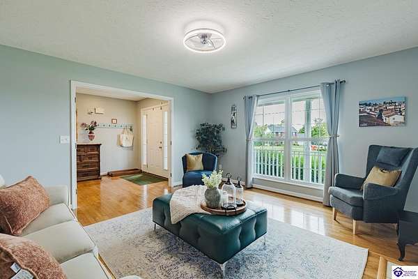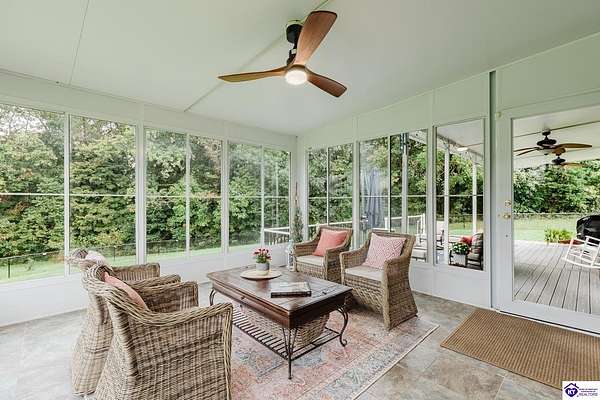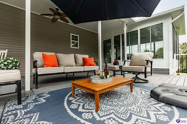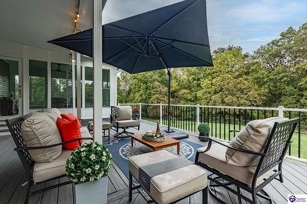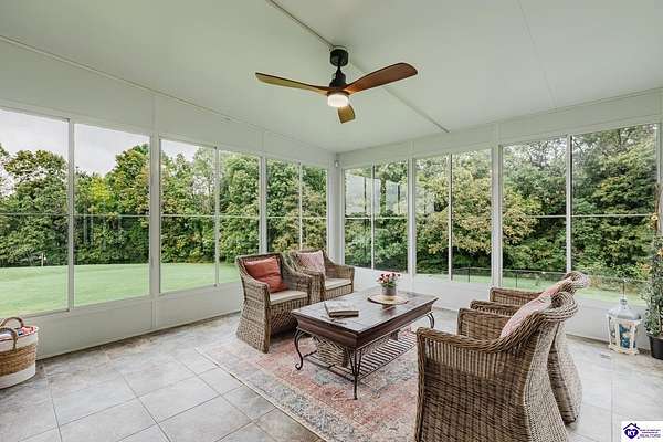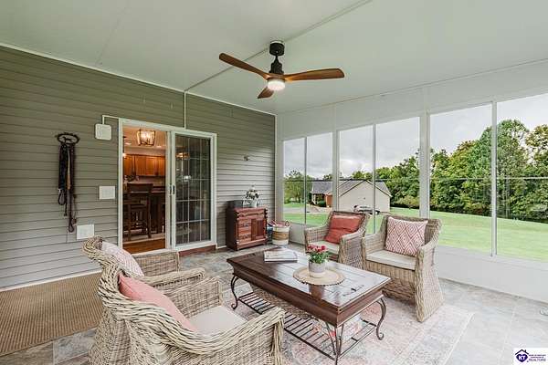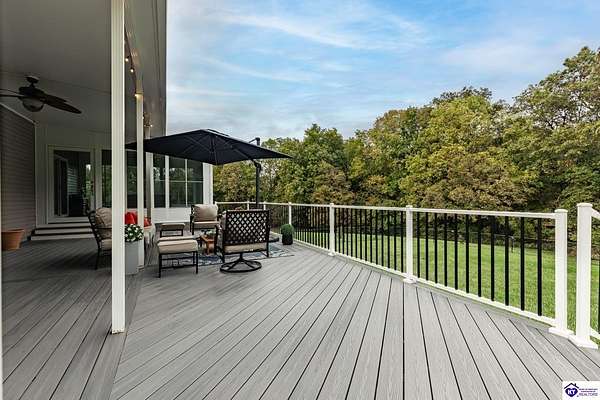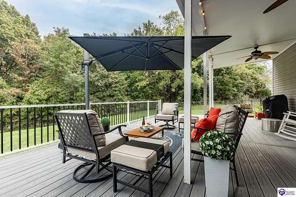 Welcome to your private family retreat at the end of a quiet cul-de-sac in the desirable Cottonwood Subdivision. Sitting on 1.55 acres, this beautifully maintained 2-story home offers plenty of space both inside and out! Featuring 3 bedrooms, 2 full baths, and 2 half baths, this home also includes a full finished walkout basement for even more living space or 4th bedroom option. The inviting floor plan includes a large living room with elegant french doors, a bright family room, and a cozy sunroom that opens to a covered back, maintenance- free composite deck with a huge space for entertaining and overlooking the lush, private backyard. The spacious eat-in kitchen is perfect for gatherings, complete with plenty of countertop space, custom cabinetry, and large butcher-block island. Hardwood floors, large windows, and abundant natural light fill the home with warmth and comfort. Outside, enjoy a covered front porch, wide concrete driveway, large storage shed, and manicured landscaping. If you are looking for privacy, space, and a beautiful country setting convenient to Fort Knox and Elizabethtown, this home is a must-see. Schedule your private showing today.