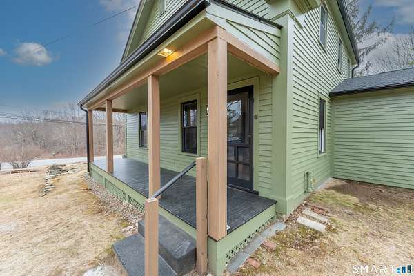 *Actual SQ Ft 1764* Town card is being updated. Welcome to your dream farmhouse retreat-completely renovated and privately set on nearly 2 acres of serene natural beauty. The inviting front porch sets the tone for peaceful mornings and quiet evenings. Inside, timeless charm meets modern updates. The stunning kitchen features marble countertops, a large basin sink, stainless steel appliances, abundant cabinetry, and a center island perfect for gathering. Antique-inspired pendant lighting adds warmth and character. A slider off the kitchen leads to a picturesque backyard where nature surrounds you. The main level offers multiple living spaces, including a spacious living room and an additional cozy sitting area or library. A quaint dining room with beautiful wainscoting provides flexible use and includes a side entrance to the circular driveway. Upstairs, you'll find three bedrooms, including a primary suite with a walk-in closet and a beautifully updated bathroom featuring a tiled shower and elegant gold fixtures. Two additional bedrooms share a fully renovated hall bath. Extensive updates include freshly painted siding, all new windows, a brand-new roof, and a new boiler-offering peace of mind for years to come. A large two-story barn provides excellent storage, hobby space, or potential for animals. With plenty of open space to explore, garden, or expand, this property offers endless possibilities.