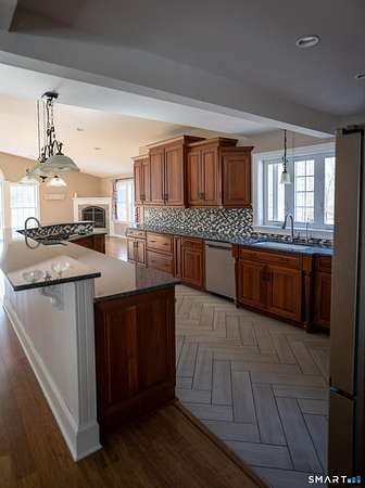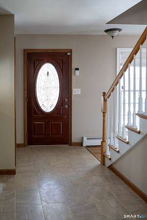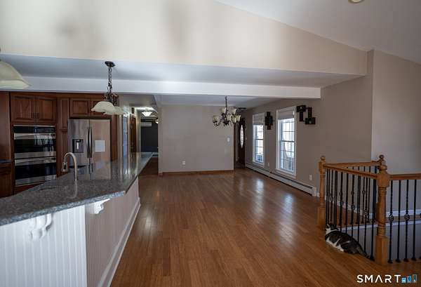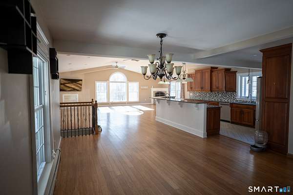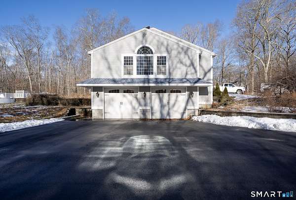 Set back from the road on a private, level 3.26-acre lot, this stunning 3,124 sq ft home offers space, comfort, and a perfect blend of indoor and outdoor living. Lightly wooded and peaceful, the property provides the privacy you crave while still being conveniently located. Inside, you'll find 3 spacious bedrooms and 2 full bathrooms, with an inviting open family room that truly steals the show-featuring cathedral ceilings, floor-to-ceiling windows, hardwood floors, and a beautiful fireplace that fills the space with natural light and warmth. A mini-split system ensures year-round comfort. The beautiful kitchen is designed for both everyday living and entertaining, offering a breakfast bar and walk-in pantry, while the large main-level laundry room adds everyday convenience. The home also boasts a newly installed tankless hot water system. Car enthusiasts and hobbyists will love the extra-large two-car garage, and outdoor living shines with a 33-ft round above-ground saltwater pool with a stone deck, perfect for summer gatherings. Adding to the charm and functionality is a chicken coop with electricity already run to it, ideal for hobby farming or sustainable living. Located just 18 minutes from Eastern Connecticut State University and 25 minutes from UConn, this home is also close to shopping & Rhode Island making it an ideal balance of privacy and accessibility. A rare opportunity to own a spacious, private retreat with modern amenities in a highly convenient location.