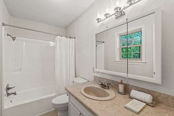 This exceptional property offers a rare three-in-one opportunity—a main residence, fully independent guest home, and a versatile 960 sq ft workshop, each with its own address and separate electric and water meters, creating flexibility for multi-generational living, rental income, or workspace needs. Set on 2.9 beautifully treed acres with a private pond in desirable Bar H Estates in Gun Barrel City, this property stands out as an outstanding value given the functionality and independence of each space. Both the main home and guest house have been refreshed with new paint. The main home features 2,086 sq ft with 3 bedrooms, 2 bathrooms, and a 2 car garage. Recently updated with luxury vinyl plank flooring, fixtures, and upgraded electrical, it includes a formal living and dining area ideal for a game room, a spacious family room with wood-burning stove, and a kitchen with freshly painted cabinets, new appliances, and breakfast nook. Enjoy outdoor living on the covered back patio with a fenced backyard overlooking the pond. The 800 sq ft guest house, remodeled in 2018, offers 2 bedrooms, a full kitchen, bath, laundry room, 1 car garage, storage shed, and its own gated driveway. A privacy fence separates it from the main home, creating a truly independent setting that is ideal for full-time living, in-laws, or long-term rental income. The 24x40 insulated metal building provides ample space for RV, boat, or multi-vehicle storage and doubles as a workshop or man cave. It includes a finished room with full bath and AC & heat window unit, ideal for an office or add'tl sleeping quarters. Second fenced area with an outbuilding and storage shed, perfect for a dog run, chicken coop, garden, or anything your imagination can dream up. Located in an area of newer homes with minimum 1-acre lots, livestock is permitted with some restrictions. Within Mabank ISD and just an hour from the Metroplex, this is a rare opportunity to enjoy country living with city convenience.