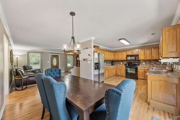 Charming country living on 2.29 acres! This 3 bed, 2 bath full brick rancher features a welcoming front porch, beautiful hardwood floors, and a spacious kitchen with abundant cabinets and tiled backsplash. Enjoy your morning coffee on the courtyard style patio overlooking a shady backyard. Tons of garage space plus unfinished basement with storm shelter. Detached shop and fenced dog run. Roof approximately 5 yrs, HVAC 1 yr, water heater 6 yrs, new garage doors. The setting of this property is unmatched. Enjoy making it yours. Plenty of room for gardening, outdoor entertaining, or simply enjoying peaceful country evenings under the stars. Call today!!!