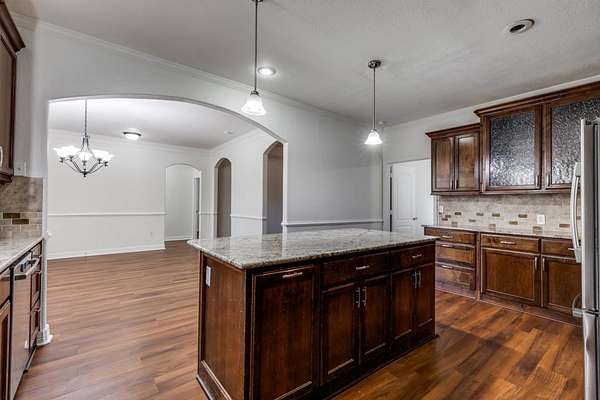 Updated 2,400 sqft. home on 1.52 acres with vinyl flooring, freshly painted, a flexible layout, and two potential primary suites. Kitchen features granite, island, walk-in pantry, soft-close cabinets, mood lighting, and Bosch oven, microwave, dishwasher. Upgrades include a 2023 engineer-certified foundation repair with lifetime warranty, 21 SEER Carrier HVAC, and full septic service completed 11/25. Huge 30x50 workshop with a 2-post car lift, upgraded lighting, epoxy flooring and three bay doors. Carport prewired for EV charger, prewired Ethernet/security, Spectrum high speed internet, 5th-wheel gate access, and many mature trees including a peach tree.