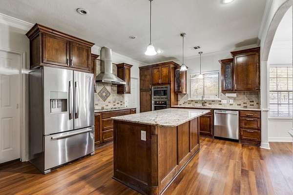 - Dishwasher, Disposal, Electric Cooktop, Electric Water Heater, Exhaust Fan, Microwave, RNGHD, Refrigerator, Stainless Steel Appliance(s)