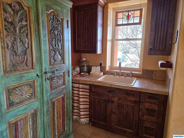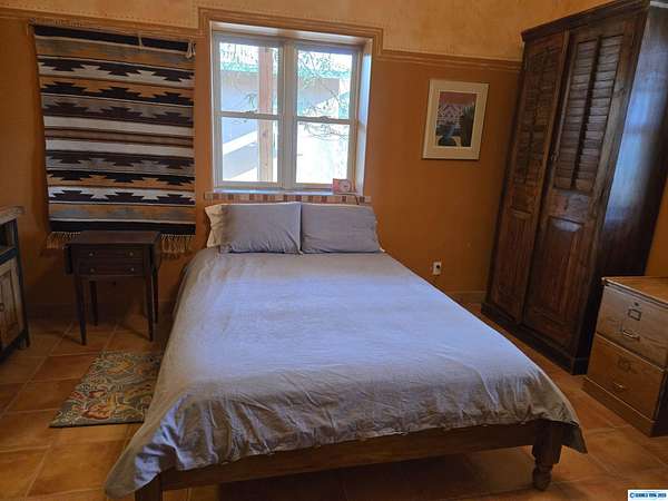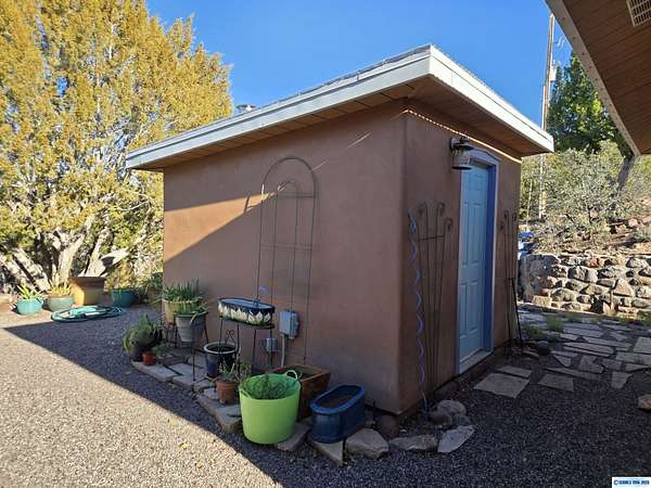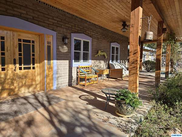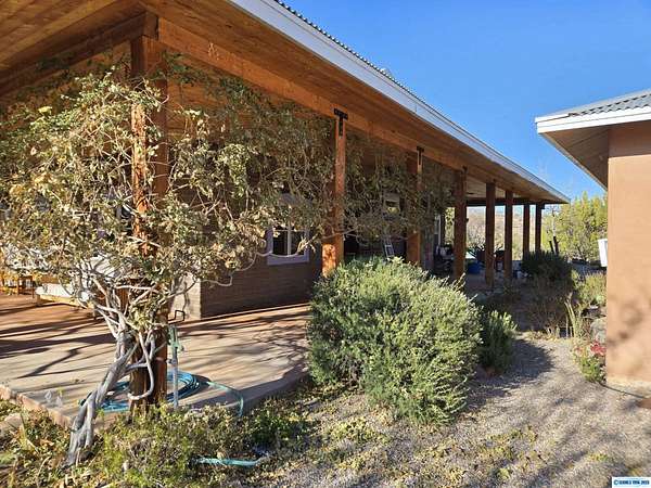 Beautiful adobe home on 85.5 acres in Gila! This property is private, treed and so special. The home has a wrap around porch that is the perfect outdoor area. There are 2 main bedrooms with baths and a small office/bedroom with a 1/4 bath nearby. The finished full attic could make a great bedroom or game room with stairs installed. This home is so custom! The paint, the doors, the beautiful stain glass so much attention to detail. This is one you must see to appreciate. The home is heated by a beautiful pellet stove in the living room and cooled with window units. There is a garage/studio on the east side of the home. This houses the washer and dryer hookups. There is a large metal shop with a bathroom including a shower on the upper level of the property. Smaller outbuildings are also on the land. West of the home is a garden area complete with raised beds. Adjacent to the garden are pens and sheds for animals. South end of the property borders New Mexico State Land.