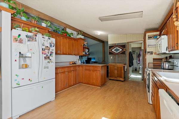 23.85 acres less than 1 mile from Hot Springs city limits, this property offers all you need in a ranchette with all the convenience the eclectic town of Hot Springs has to offer. Driving in on a private road that loops around for easy turn-around with trailers, you can enter the home from the steps through the fenced front yard, or the fenced back yard with a ramp leading up to the deck through sliding glass doors into either the amply lighted kitchen, the addition (mud room, front room, whatever your imagination sees fit for it to be!) a little farther down you can directly come in through the laundry area. The deck looks out onto the large garden, barn, shed, shop and cabin. Going past the driveway you can enter the barnyard area and pastures, all set up for animals of (almost) every size. The chicken coop with its substantial runs will allow for healthy egg production and ease of care & feed storage through the shop. The historic cabin offers a wide variety of opportunities.. Addition is 660 sq feet, original double-wide is 1820 sq feet, there is a lot of space and light in a nicely laid out floorplan. 6 GPM well has provided ample water for animals and garden. There is a walking path along the highway starting at the edge of property leading to town (.5 miles to city limits) and there you will find a school, bars and restaurants, mineral hot springs, health clinic, hardware store, grocery store, coffee shop and organic market. Current owners have not used propane to heat, though there is an owned propane tank that was last filled in 2021. Septic pumped in July 2025, septic has not given Sellers any trouble.
