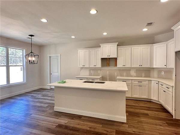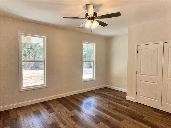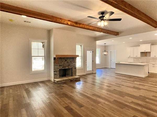 If you're looking for some acreage and privacy, this is your dream property! This new home is situated on 4.9 acres and nearing completion. Large central living room with split bedroom floor plan. Open kitchen with a Quartz-topped island with seating, sunny breakfast room, lots of counter space and stainless steel appliances. Inviting primary suite includes a spacious bath with separate closets, Quartz double vanities, a soaking tub and separate shower. Three additional bedrooms complete the living spaces in this one-level home. Rear covered porch just off the kitchen. LVP flooring, Quartz countertops and matte black lighting & plumbing fixtures throughout. All electric home with blown insulation is energy efficient. One-year termite bond included. Plans and specs subject to change without notice at builder's discretion.
