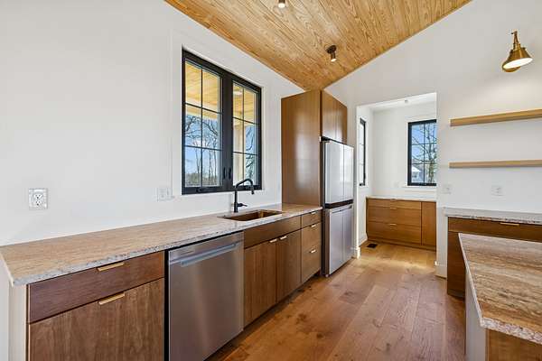 Beautifully crafted 3 BR, 3.5 BA custom home on 36 acres (35 wooded), offering quality finishes and thoughtful design throughout. Features include gorgeous hardwood flooring, granite countertops, and tile in all wet areas. Interior highlights include 8 ft Amish-made alder wood doors, insulated interior walls, skylights, and pine ceilings in the kitchen and living room.