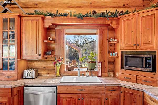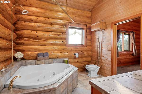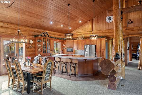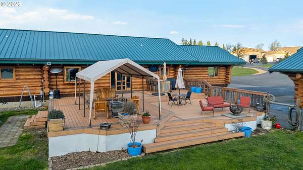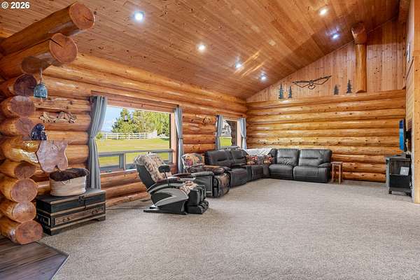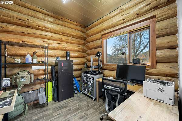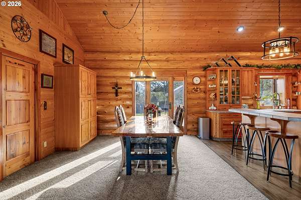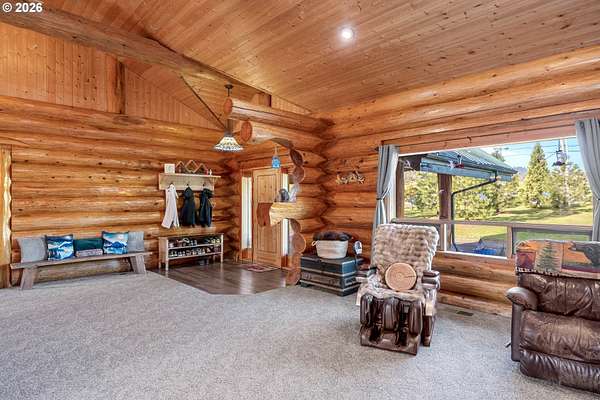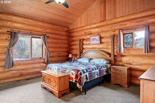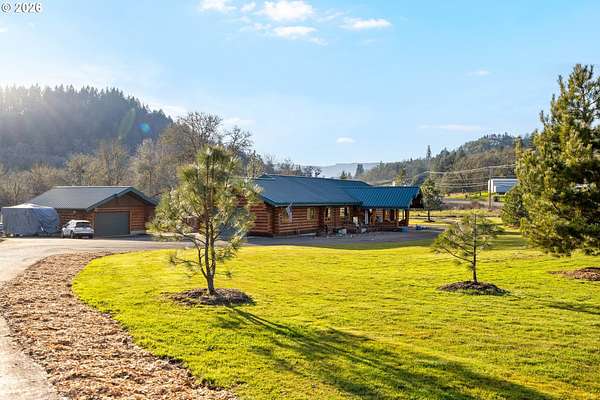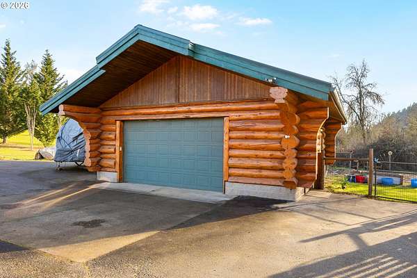 Handcrafted by Pioneer Log Homes, this custom log home showcases massive Western Red Cedar logs and a level of craftsmanship that's increasingly hard to find! Set on 2.19 level acres in the Garden Valley area, this 2,375 sq ft single-level home features a dramatic great room with 17-foot vaulted ceilings and an expansive 36' x 26' living space that immediately sets the tone. Handcrafted wood doors, carved details, and exposed log construction anchor the home with warmth and authenticity throughout. Vaulted ceilings extend beyond the main living area into multiple rooms, enhancing the sense of space and natural light throughout the home. The thoughtful single-level layout offers wide hallways, minimal steps, and easy indoor-outdoor flow, making the home both comfortable and functional. Level, usable acreage surrounds the home, allowing flexibility for gardening, recreation, or future improvements. The open-concept kitchen and dining area offer generous workspace, pantry storage, and a functional flow for daily living or entertaining. Three spacious bedrooms include a private primary suite with walk-in closet and attached bath. The home offers forced-air heating, central air conditioning, and high-speed internet availability. Outside, the property is equally intentional. A 14,000+ sq ft paved driveway provides easy access to oversized attached garage. Additional detached garage built with the same log construction as the home, has a small workshop with paved RV parking that is ideal for equipment, hobbies, or additional storage. Covered front porch and expansive back decking create multiple outdoor living areas with room to relax or entertain year-round. Located just minutes from town, vineyards, and outdoor recreation, this property delivers privacy, function, and craftsmanship without sacrificing convenience. Homes of this quality, construction style, and setting rarely come available.