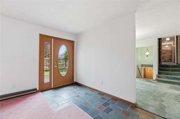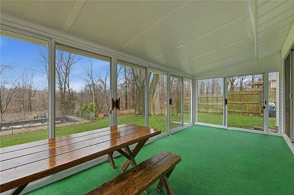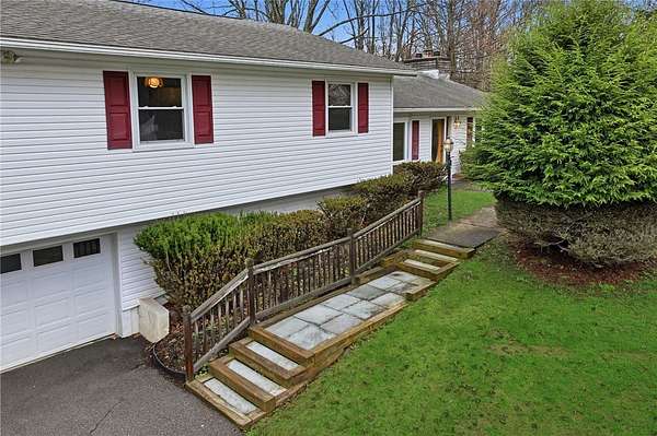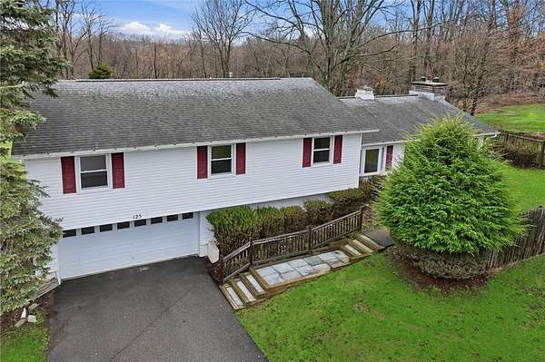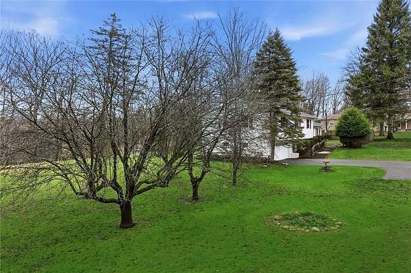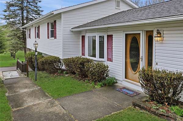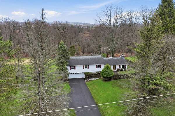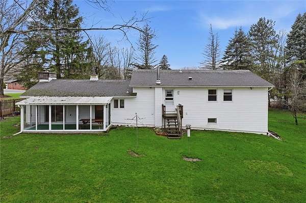 Sweet and spacious, this center-split design offers 3 levels of living space on an oversized 1.7 acre lot. If Ithaca has 'Far Above Cayuga's Waters" then Dryden has "High Above Virgil Creek" and this home enjoys the sights and sounds above the rushing waters leading to Dryden Lake! Solid and well-maintained throughout, evident from the moment you enter via the front steps into the private front entry with slate flooring. A large living room is highlighted by brick fireplace and accesses the enclosed 3-season back porch via a sliding door. Formal dining room centers the home, with stairs leading up or down, with level access to eat-in kitchen. There's also a door to access the back porch off kitchen too. Upstairs there are 4 nice-sized bedrooms, 2 with hardwood floors. A primary suite with views of the side and back yard and pocket door to full bath. Primary bath has a nice size and is ready for your updates. Renovated laundry room and 2nd full bath also on the upper level. This updated bath has all new: quartz vanity, low-entry shower, luxury vinyl flooring, lighting, plumbing fixtures. The laundry room also acts as a nice mudroom with outside stairs to backyard fun, including an in-ground pool. Downstairs there's a family room heated by gas fireplace. There's also the 2-car garage plus mechanical workshop room and storage room on the lower level. Outside spaces are expansive with pear and apple trees, a detached storage shed and firepit area. ADU possibilities? Buyers can verify subdivision options with the Town of Dryden! Enjoy the allure of nearby Virgil Creek, meandering below the property with great seasonal vistas. There's ample garden spaces here too! Down the street is Dryden Lake, a popular fishing or kayaking site with no motorized boats for the nature lovers and bird watchers delight! Also located close to the Jim Schug Dryden Lake Trail which takes you all the way into Dryden Village. This home shows pride of ownership with low maintenance vinyl siding and replacement windows. Bring your modern touches to make it your new Dryden home!
