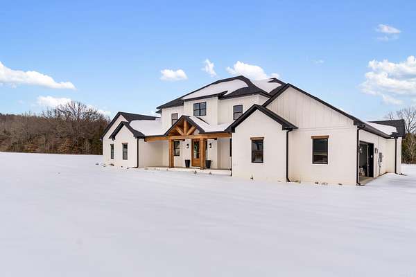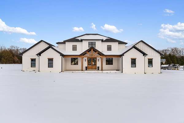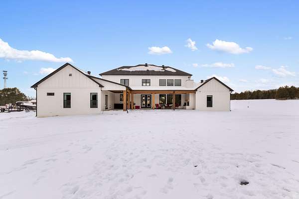 Welcome to your dream estate -- a stunning luxury residence perfectly blending elegance, comfort, and outdoor beauty on a private 3.12-acre sanctuary. Step inside to discover grand high ceilings and expansive living spaces that radiate sophistication and openness. Every bedroom boasts spacious walk-in closets, providing abundant storage and organization. The heart of the home features a gourmet kitchen with premium finishes, TWO dishwashers and a double oven complemented by expansive natural light and seamless flow to living and entertaining areas. Relax and entertain year-round with a beautiful outdoor living area, complete with a custom outdoor fireplace, perfect for cool evenings and social gatherings. The property also includes a stocked pond, providing a perfect backdrop for outdoor enjoyment. Practical luxury continues with electrical infrastructure ready for an EV charging station and a future hot tub on the back porch adjacent to the primary suite, offering easy connectivity and convenience for today's modern lifestyle. Set against breathtaking scenery and wide open space this property also welcomes chickens, allowing for a touch of country living and self-sufficiency.
