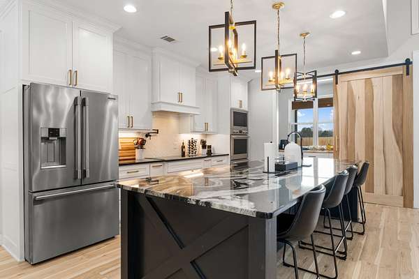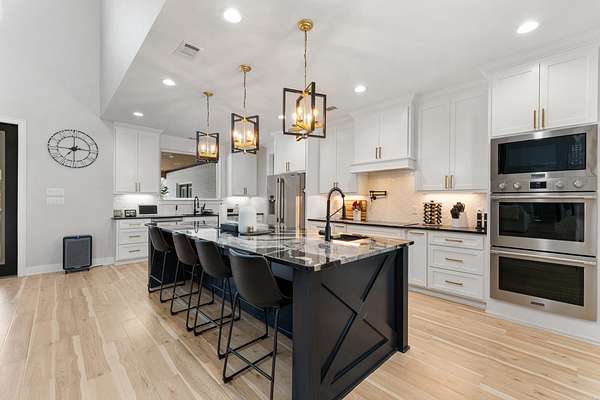 Private Drive, Safe Room, Hot Water Recirculation for Fast Hot Water, two dishwashers, EV charging infrastructure available for cars, insulated garage, chickens welcome, pump for extended warm water in jacuzzi tub & high speed fiber optic internet available! Welcome to your dream estate — a stunning luxury residence perfectly blending elegance, comfort, and outdoor beauty on a private 3.12-acre sanctuary. Step inside to discover grand high ceilings and expansive living spaces that radiate sophistication and openness. Every bedroom boasts spacious walk-in closets, providing abundant storage and organization. The heart of the home features a gourmet kitchen with premium finishes, TWO dishwashers and a double oven complemented by expansive natural light and seamless flow to living and entertaining areas. Relax and entertain year-round with a beautiful outdoor living area, complete with a custom outdoor fireplace, perfect for cool evenings and social gatherings. The property also includes a stocked pond, providing a perfect backdrop for outdoor enjoyment. You don't want to miss this one! Schedule a showing today for your private tour. Appraisal on file.
