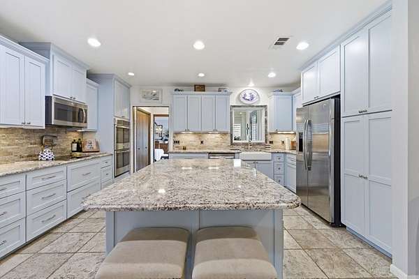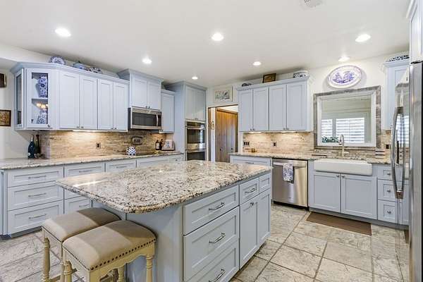 Experience the classic elegance of this hill country ranch style home. Remodeled to incorporate modern updates & an open concept layout, this home & guest house are set on a gently terraced 4.3 acres. The kitchen is the heart of the home with a large granite island, high end stainless steel appliances, & deep farmhouse sink. The kitchen opens to a casual living area with a stone fireplace. The primary living area connects to nature with its walls of floor to ceiling windows where you can feel away from it all. Two spacious ensuite bedrooms, a formal dining area, office, 3rd full bath, large laundry/utility room, attached two car garage & workshop complete the main house. The 2-story guesthouse is classic hill country with a fireplace in the living room, kitchen, bath and 2 bedrooms on the main level & the primary bedroom/bath & sitting area on the 2nd level. For the nature-lover, relax & overlook the property from the deep covered verandah of the main house. Enjoy outdoor "great room" anchored by a custom-built stone fireplace & sitting area. Or entertain at the outdoor covered kitchen. Add to this, approximately 300 ft of Guadalupe River frontage for yr-round water activities.