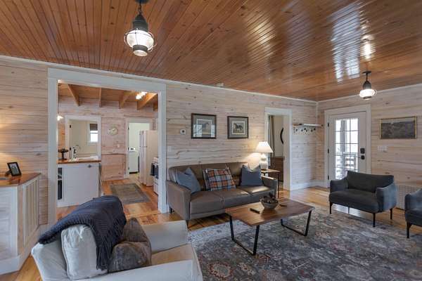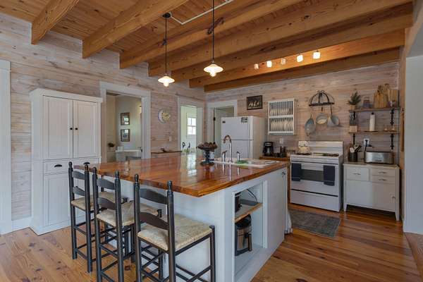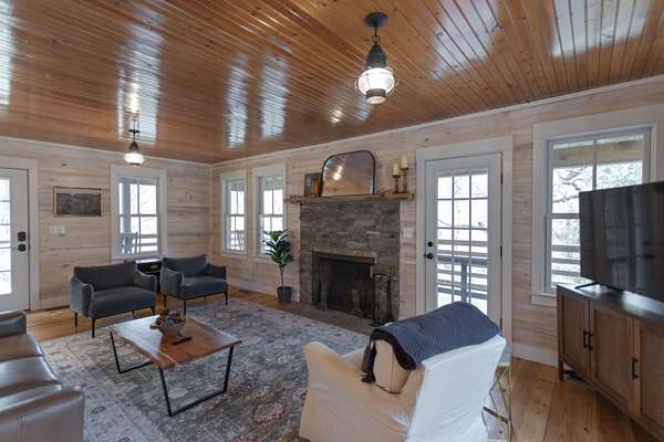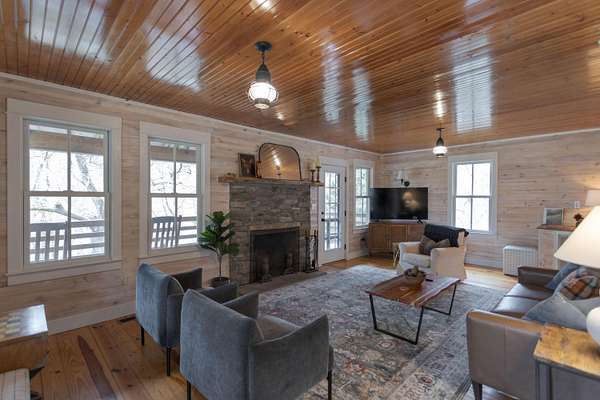 Tucked along the banks of Buffalo Creek in Rockbridge County, 125 Millers Landing offers a perfect spot to enjoy nature without sacrificing comfort. This inviting three-bedroom, three-bath home is designed to embrace its natural surroundings, with ample river access that makes it easy to kayak, paddleboard, swim, or simply unwind by the water's edge.In addition to river access on the property, the home boasts a thoughtfully designed terraced side yard and wraparound porch, ideal for entertaining. A grassy area along the river provides yet another outdoor space for fun. Inside, the home offers a spacious living area anchored by a wood-burning fireplace. The living room opens into a large kitchen and dining area are filled with natural light. (MORE)