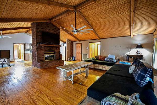 Welcome to your private slice of country living in Trenton! Nestled on 2.4 beautiful acres, this charming 3-bedroom, 2-bathroom log cabin-style home offers the perfect blend of space, character, and convenience. Step onto the oversized front porch, perfect for morning coffee or winding down in the evenings, and enjoy peaceful views of your land. Out back, a large rear porch creates the ideal setting for entertaining, grilling, or simply enjoying the quiet surroundings. Inside, you'll find wood flooring throughout, adding warmth and rustic charm to the home's cabin feel. The property also features a metal roof and newer HVAC system, giving peace of mind on major components. For those who need space to work or store equipment, the large 2-car garage/workshop is a major bonus--ideal for hobbyists, mechanics, or anyone needing extra functional space. Conveniently located less than 5 miles from I-20, this home offers easy access for commuting while still maintaining a private, country atmosphere. With just a few finishing touches needed, this property is a great opportunity to add your personal touch and create your dream home. If you're looking for land, character, and convenience--this one checks all the boxes. Home is being sold as-is, where-is. With just a few finishing touches--particularly in the guest bathroom, where materials are already on-site--this home is ready for you to make it your own and add immediate value.