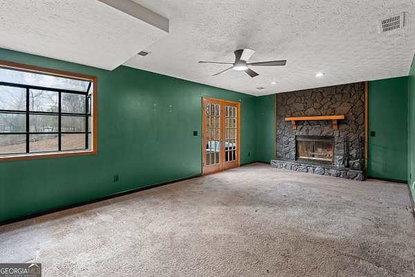 Welcome home to this charming 3 bedroom, 2 bath property with NO HOA. Step through the front door into a welcoming living room that flows seamlessly into a spacious dining area-perfect for hosting gatherings. The kitchen features freshly painted cabinets and brand new flooring. Upstairs, you'll find three comfortable bedrooms and two full baths. The primary suite includes its own private bath with granite countertops and tile flooring. The secondary bathroom has been updated with new flooring! This level also includes a convenient laundry chute. The lower level offers a large bonus room with a cozy fireplace, ideal for an additional bedroom, playroom, or office. This space also includes a half bath with new granite countertops. The basement features a wet bar and plenty of room for entertaining, along with a separate exterior entrance. Outside, enjoy a huge yard with endless possibilities. This home has close to 2 acres. The AC was replaced in 2021. Located just minutes from Piedmont Hospital and Trilith, this home offers both comfort and convenience.