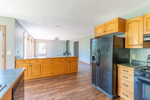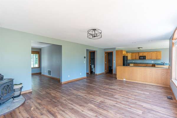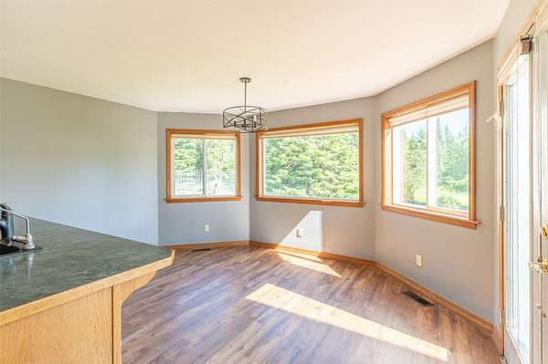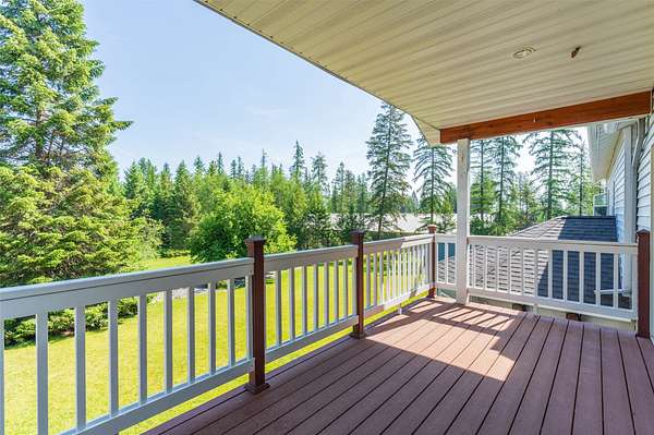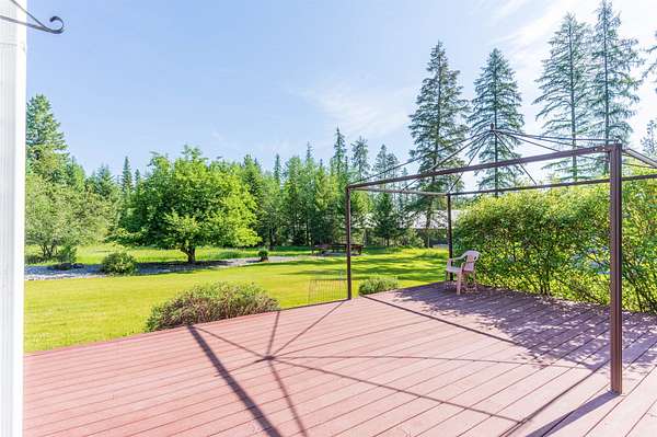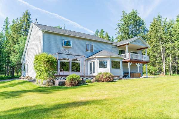 Enjoy peaceful country living just minutes from downtown Whitefish on this beautiful 5.12 acre property. This charming 3 bedroom, 3 bathroom home features a spacious open layout with abundant natural light and a large kitchen perfect for gathering. The main level includes a versatile bonus room. Upstairs, the expansive primary suite offers space for an office and opens to a private deck looking over the property. Relax on the back deck overlooking a manicured lawn, fenced garden, and playhouse tucked in the woods. Ample storage with carports, and more. Level land provides space for horses. Easy access to Glacier National Park, Kalispell, and the airport.