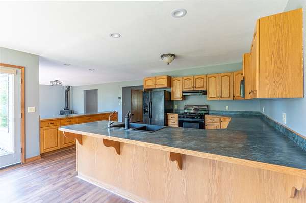 - Forced Air, Natural Gas, Wood, Wood Stove