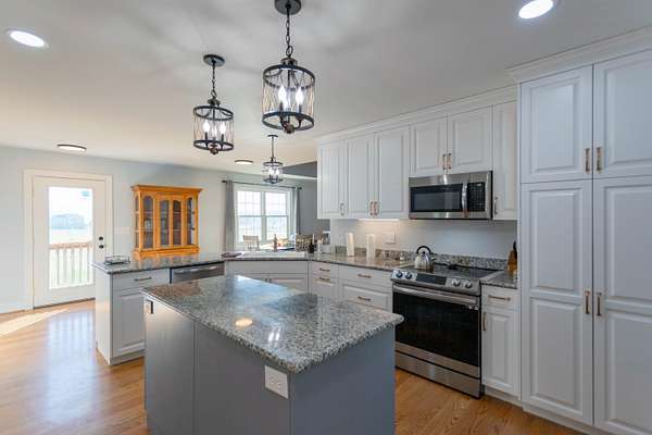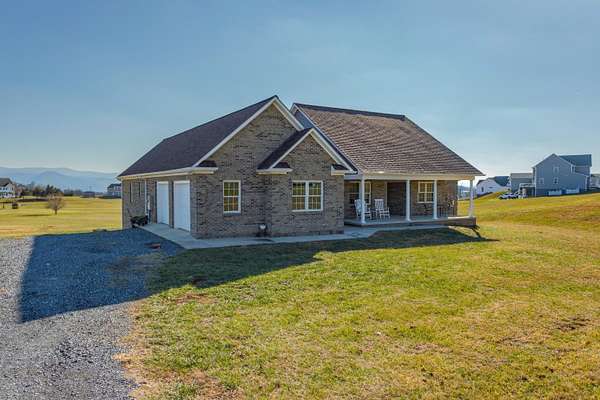 Like-new custom home in northern Rockbridge County offers exceptional one-level living with room to grow. Quality craftsmanship is evident throughout, including locally sourced trim and wide-plank red oak flooring. Set on more than 2 acres of level, usable land stretching nearly 200 yards deep, this move-in ready residence boasts outstanding Blue Ridge mountain views to the southeast. The open kitchen features granite counters, stainless steel appliances, custom cabinetry, and an island for extra prep space. The primary suite includes a tray ceiling, walk-in closet, and ensuite bath with a double vanity and shower. A large laundry room is already plumbed for a utility sink, and the double attached garage provides easy main-level access.