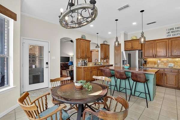 - Cathedral Ceiling(s), Chandelier, Decorative Lighting, Double Vanity, Eat-In Kitchen, Granite Counters, High Speed Internet Available, Kitchen Island, Natural Woodwork, Pantry, Sound System Wiring, Vaulted Ceiling(s), Walk-In Closet(s)