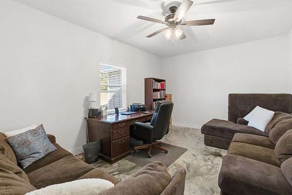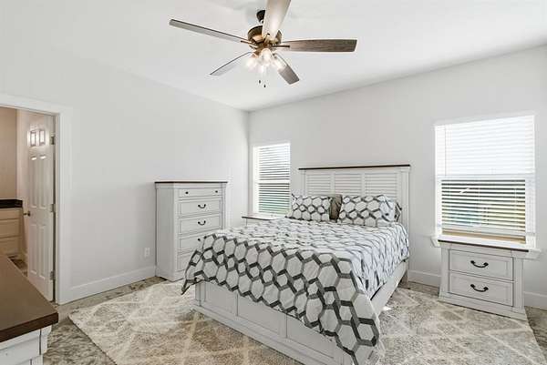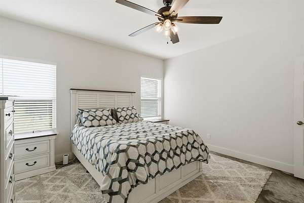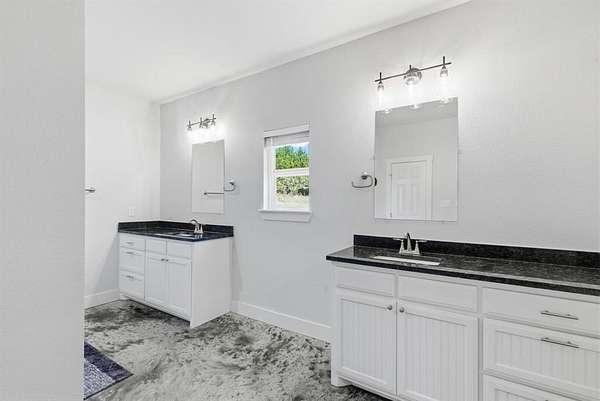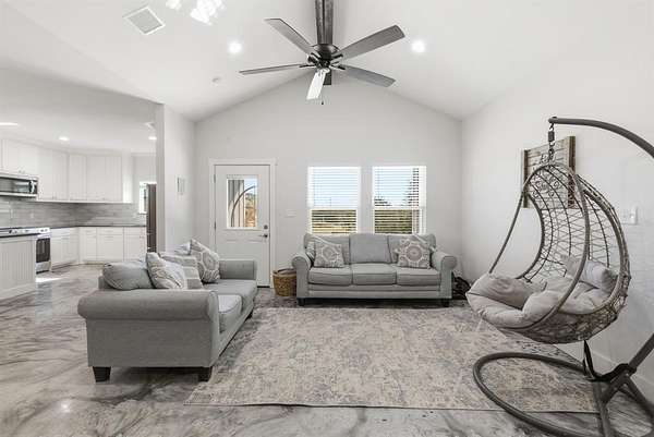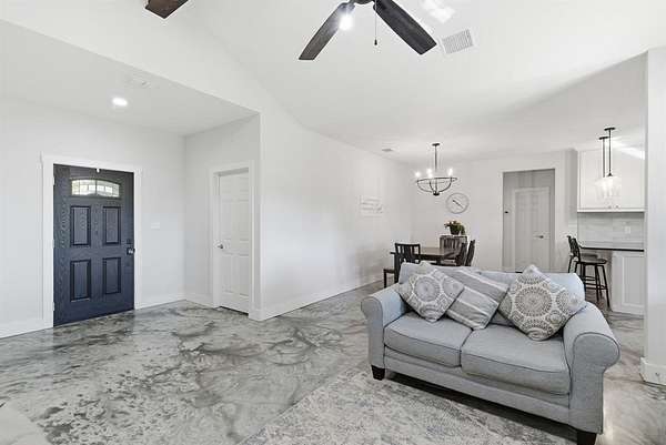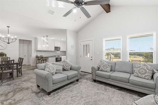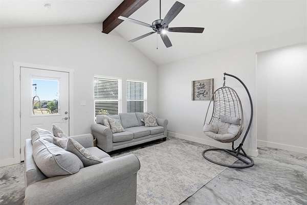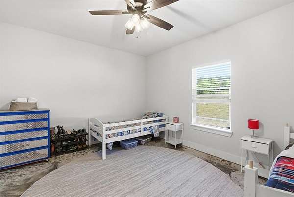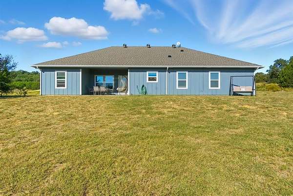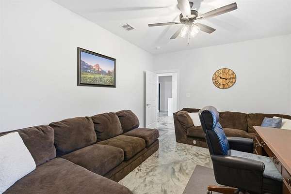 Welcome to this 2023 custom built, modern farmhouse that boast 3 bedroom, 2 bathroom, and 1 office space, situated on 8.25 acres. This property features 2,107 sqft of living space with breathtaking stained concrete flooring throughout. Upon entering you will notice the high vaulted ceilings, open concept kitchen with built in appliances, granite countertops, and plenty of soft close cabinet space. The oversized living and dining area offers plenty of space for hosting or family gatherings. This split floor plan features an oversized master suite with an enormous walk in closet. The master bathroom offers a double headed shower, and two separate vanities with granite countertops. The two guest bedrooms over plenty of space with walk in closets. Outside you will notice the peaceful scenery with numerous mature oak trees. With no HOA, this property welcomes any and all livestock, outbuildings, mother in law suites, secondary residences... the list goes on. Horses are welcome!! The property features its own private water well, water softener, and aerobic septic. No water or sewer bill!! A property like this is rare to find!! Sellers are motivated!!