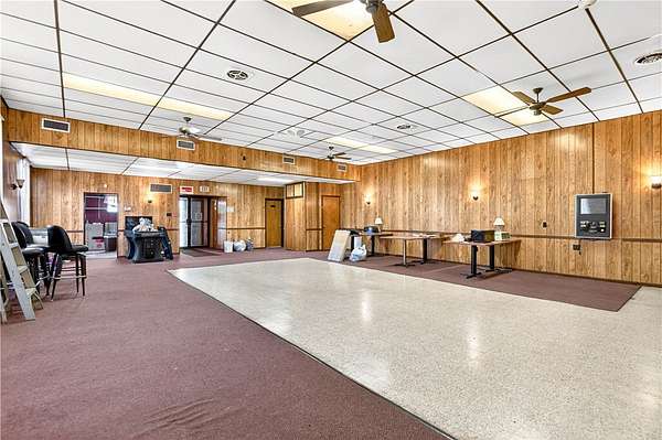 Ansul wet chemical fire suppression system in the kitchen. Three furnaces serving separate functional areas (basement, upper level, and AC circulation). The building's long-standing use as a community club presents an opportunity for modernization and value-add repositioning.