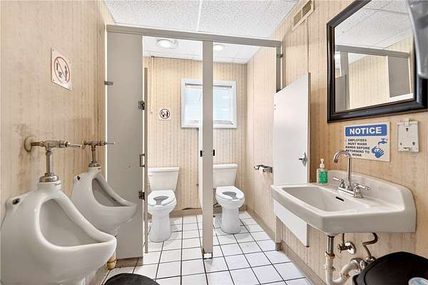 The main level features a 57' x 29' open-span layout well-suited for flexible buildout, along with a 12' x 11' mechanical/storage room, two restrooms, an 11' x 9' kitchen, storage closet, and built-in bar. The lower level provides comparable square footage and includes framed and plumbed space for an additional restroom, plus a dedicated mechanical/storage area previously utilized for storage and recycling handling.