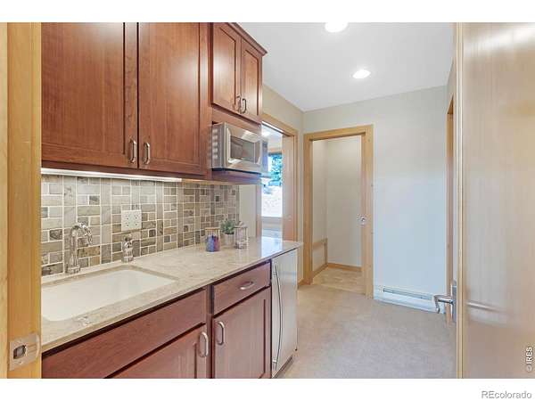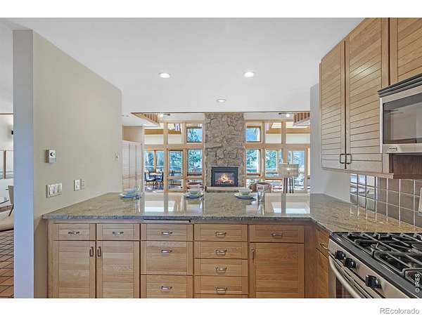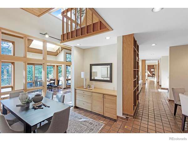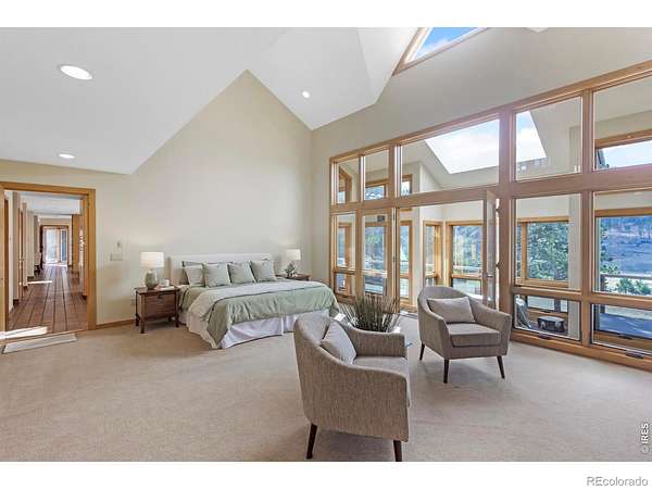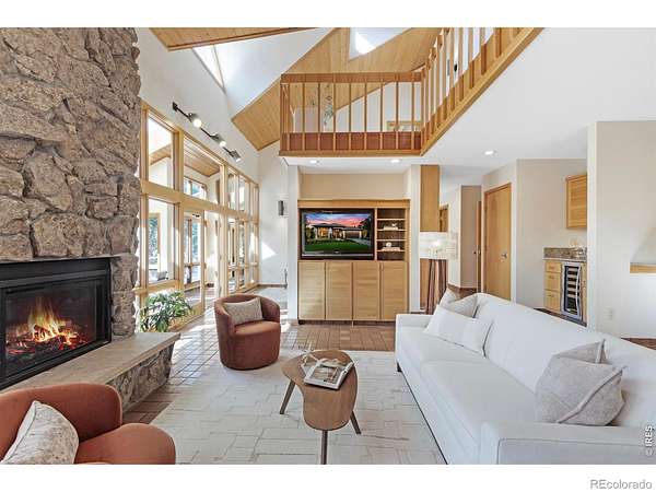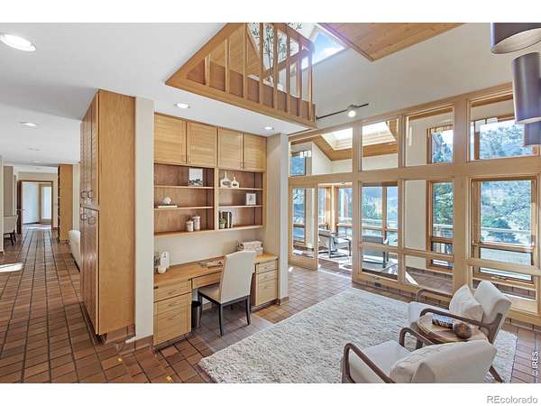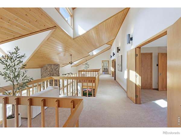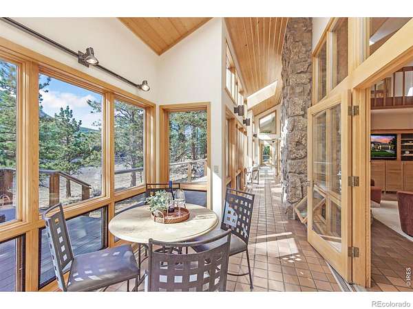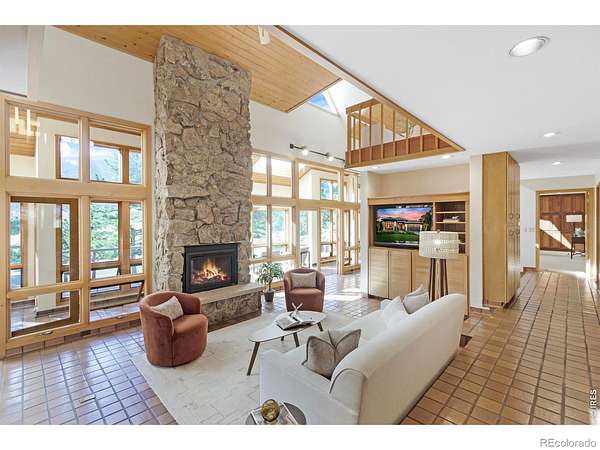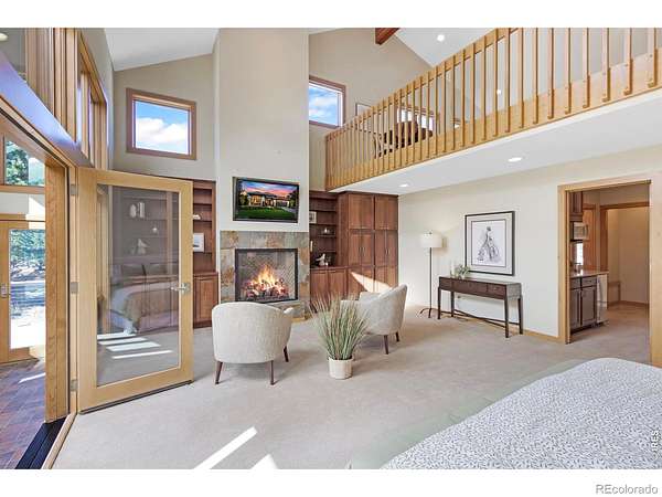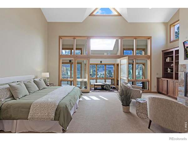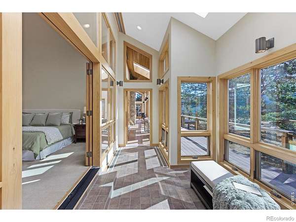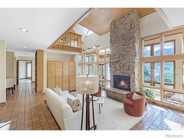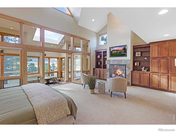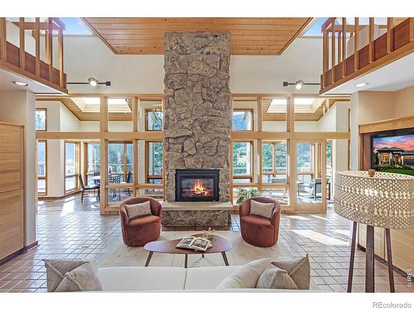 This stunning custom residence was built with a double-wall, envelope-style construction. It offers breathtaking mountain views and a range of luxury features. This is a rare opportunity to own a truly extraordinary property. The chef's kitchen is complete with a dual-fuel range and oven, a Uline ice maker, and a walk-in pantry. The wet bar with wine fridge elevates both daily living and special occasions. A moss rock gas fireplace, tongue-and-groove ceilings, and skylights warm the open-concept living area. The home features multiple loft spaces, offering versatility for use as an art studio, reading nook, or additional workspace. The main-level primary suite features a gas fireplace, direct access to the sunroom, a south-facing composite deck, and oversized windows. Highlights of the suite are the custom-designed kitchen/coffee bar and in-floor bathroom heat. The walk-in closet boasts a built-in organizational system. The adjoining five-piece bathroom features marble countertops, a jetted soaking tub, and Grohe fixtures throughout. The home offers two additional bedrooms upstairs. Bedroom 2 features a window seat, a walk-in closet, and a private three-quarter bath. Bedroom 3 also features its own three-quarter bathroom, providing added comfort and convenience. Another highlight of this home is the significant recreation or bonus room, featuring engineered wood flooring and multiple closets. Design drawings available for an extra bedroom and bath. The main-level laundry area is spacious, with a dedicated sink, ample counter space, and room for a second fridge. Outdoor spaces are an extension of the home's charm. The large composite deck is perfect for outdoor dining, while the sunroom offers a transitional space that can be enjoyed year-round. The natural gas fire pit makes evening gatherings a pleasure. Passive solar design heats the home's interior. You're minutes from parks, trails, and shopping, yet far enough removed to enjoy the peace of nature.