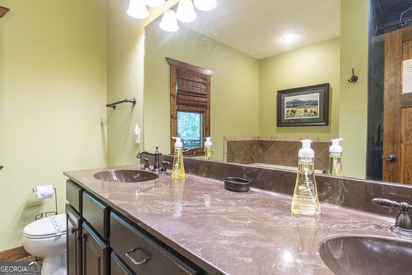 - Beamed Ceilings, Double Vanity, Master On Main Level, Separate Shower, Tile Bath, Vaulted Ceiling(s)