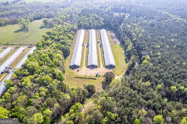 Broiler House Poultry Farm with land for expansion Three 50' x 560' Broiler Houses built in 2005. Houses have public road access to the front and rear, 4' front porch with concrete pad, 14' load out doors on front and rear, three walk-in doors, Chore-Tronics equipment, Ziggity Systems Big Ace drinkers, (5) big ace waterlines, Complete flood pans, Chick-mate brood chamber, 100' cool cells, Midway cool cell reservoir, tunnel curtains, Bulldog security system, 1,000 gallon propane tank, (5) 36" slant-wall fans, (10) 52" galvanized tunnel fans, (2) 15 ton feed bins and (1) dose-a-tron medicator. WATER (2) Wells on site. Franklin Electric SD-30 Controlled, Sub-drive connect boxes. 1" stub out hose at well house and (2) front free spigots on the site. Well 1 produces 150 GPM Well 2 produces 80 GPM POWER Rayle EMC underground power with backup 125KW Katolight Generator. Generator has 623 hours at last service. John Deere powered with 330-gallon diesel fuel tank and (2) Asco transfer switches. Serviced annually by Earls Electric. Cliamate controlled 12x16 detached building with full bathroom and backup generator power. Used as a breakroom but could be converted to living quarters. DO NOT ENTER PROPERTY WITHOUT APPOINTMENT LISTING AGENT MUST BE PRESENT