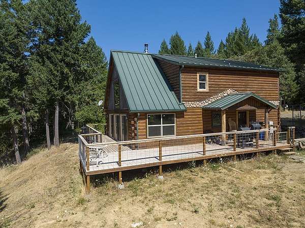 Oregon Dream Cabin! Immerse yourself in the quintessential charm of this two-story log cabin tucked away in the woods on a tranquil 6.64-acre parcel featuring a year-round pond. Located in desirable Selma, this property offers a peaceful setting with classic Oregon appeal. The home includes two bedrooms plus a versatile loft, ideal as an additional sleeping area, home office, or creative retreat with picturesque water views. Quality craftsmanship shines throughout, with beautifully detailed woodwork showcasing a variety of natural wood finishes. The primary bathroom has been recently upgraded with a custom tile shower/tub combination, adding a touch of comfort and luxury. A detached two-car garage adds functionality, and the property also includes a 1972 single-wide trailer on site. Don't miss the opportunity to experience the charm and serenity of this Oregon dream property. Call today to schedule your private showing! Buyers to perform their own due diligence. Owner may carry!