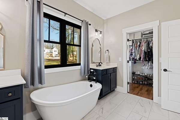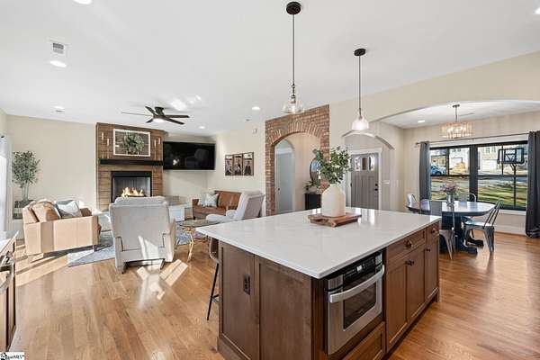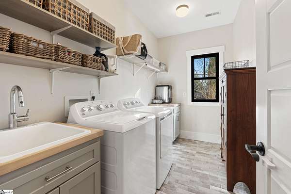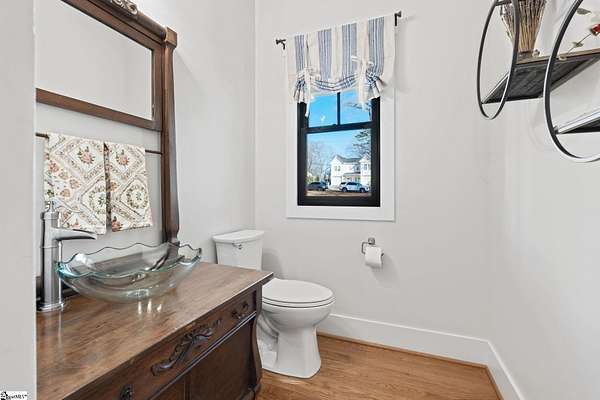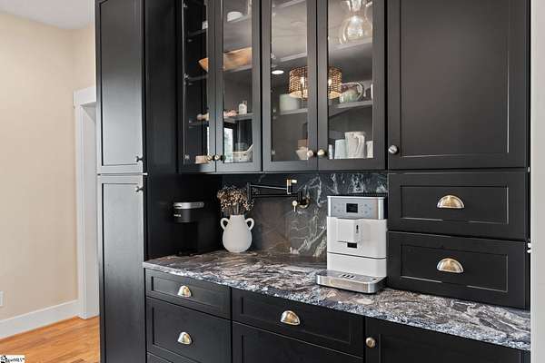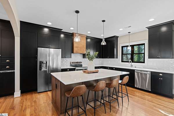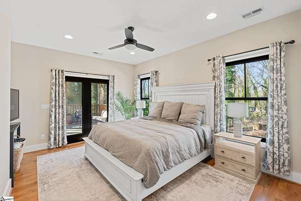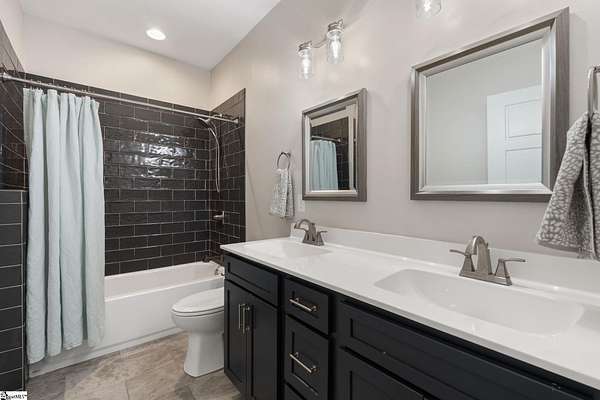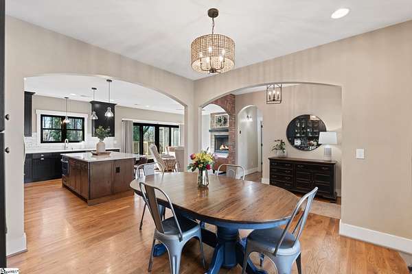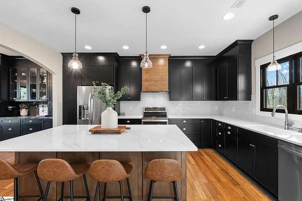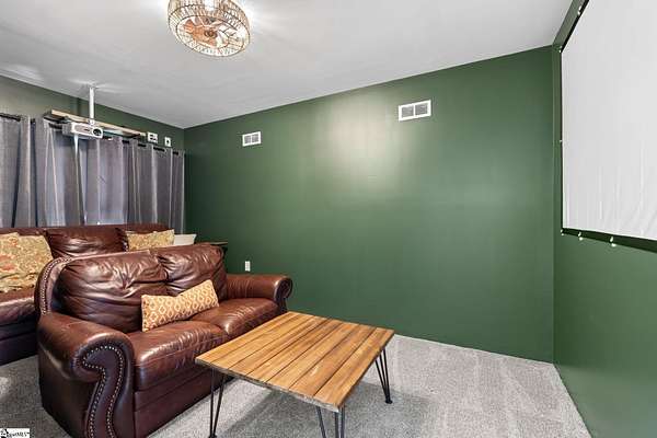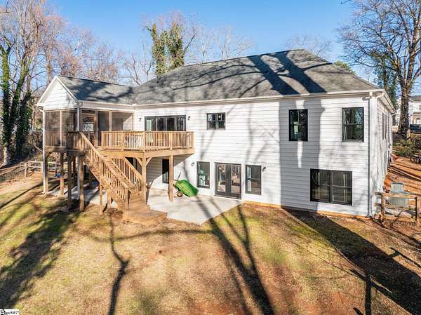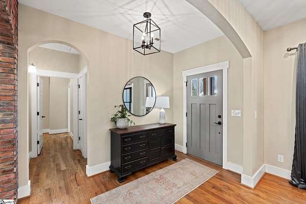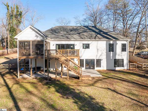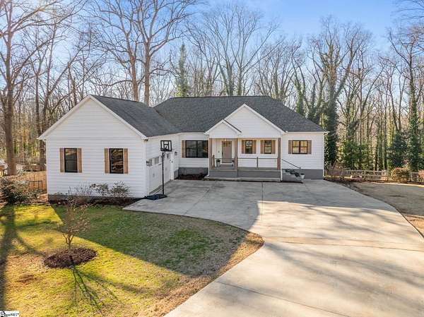 Fantastic opportunity to own 4+ acres with a beautiful craftsman style home built in 2020! Located just minutes from Furman University, the Swamp Rabbit Trail, and a short drive to Downtown Greenville, this property offers the perfect blend of privacy and convenience. This craftsman-style home features an open floor plan highlighted by a stunning gas log fireplace and abundant natural light. The kitchen is designed for both function and style with quartz countertops, a large eat-in island, stainless steel appliances, and a sleek modern feel that complements the home's craftsman charm. The dining room has a custom built-in coffee bar and extra cabinetry, & the foyer showcases a beautiful brick archway that flows seamlessly into the living room. The primary suite on the main level offers a spacious retreat with dual vanities, a soaking tub, a separate tiled shower with frameless glass door, and a walk-in closet with custom built-ins. Two additional bedrooms and a large walk-in laundry room complete the main level. The laundry room features a utility sink and brick tile flooring for added character and functionality. Downstairs, the finished basement provides a generous family room, a separate movie theater media room, a full bath, and a fourth bedroom. There is also a large unfinished basement area ideal for storage. Enjoy outdoor living with a screened porch overlooking the private backyard, a grilling deck, and a patio below. The lot has already been subdivided--build next door or maintain the additional space for added yard & privacy. As an exciting bonus, the rear of the property is positioned to back up to the future San Souci extension of the Swamp Rabbit Trail. A rare opportunity to enjoy acreage, new construction, and an unbeatable location all in one property!