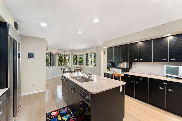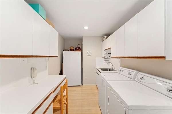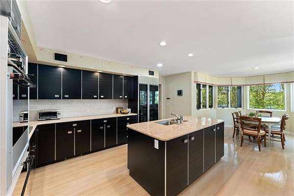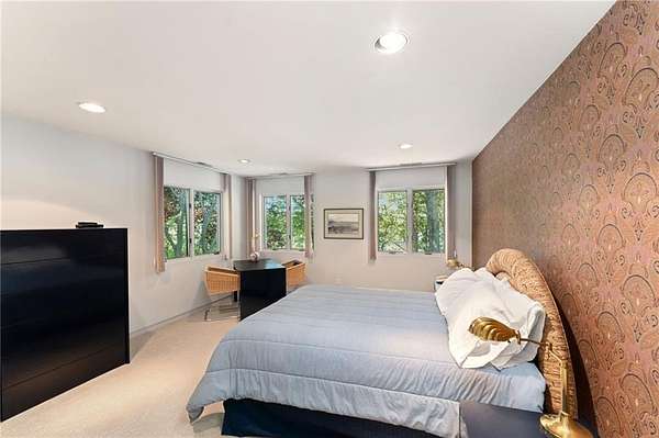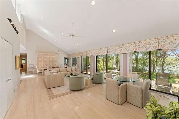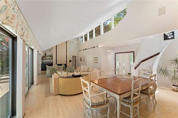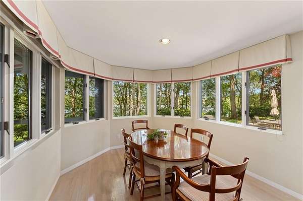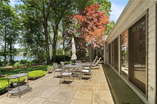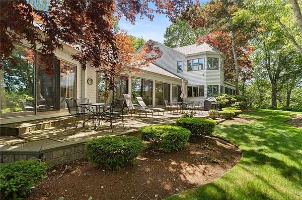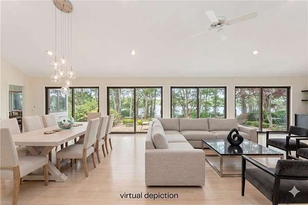 Discover a rare Narragansett sanctuary where expansive acreage meets coastal convenience. Tucked away on a sprawling 8-acre estate, this gorgeous 4 bed/4.5 bath custom-built contemporary offers a level of privacy and serenity that is virtually unmatched in the area. Just 5 minutes from Narragansett Beach and its vibrant community, the atmosphere here is one of absolute seclusion-a park-like retreat overlooking the tranquil waters of Silver Lake. Spanning over 4,100 SF, this single-owner residence was designed to invite the outside in. The 1st floor impresses with its breathtakingly beautiful Sun-Drenched Open Concept, soaring ceilings and walls of glass framing panoramic lake views. A classic German Poggenpohl-inspired kitchen with top of the line appliances, a dedicated office, 1/2 bath for guests, laundry room, full bath plus a generously sized and thoughtfully located primary suite complete the 1st level. Ascend the sleek, curved staircase to find 3 spacious bedrooms plus an additional den or office space, 2 full baths and cozy skylit library/reading area. The layout effortlessly accommodates multi-generational living or grand-scale entertaining. The vast, professionally manicured private grounds lead directly to your private lake frontage. Pride of ownership is evident throughout this meticulously cared for home. This is the ultimate find for the buyer who refuses to compromise. Experience the luxury of space and the gift of silence and nature in this lakeside haven.