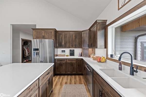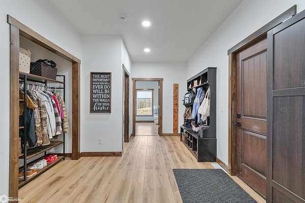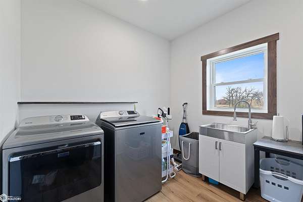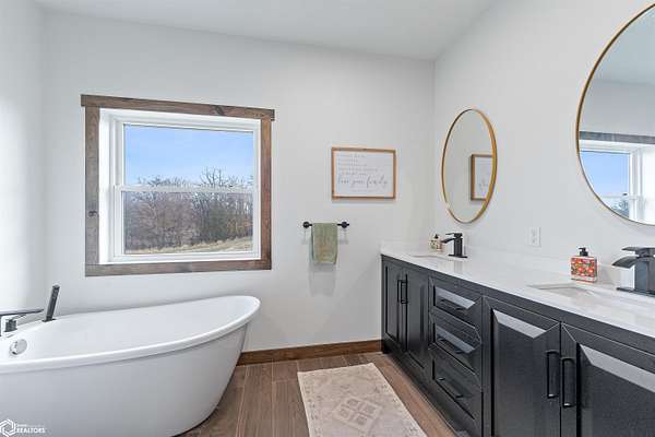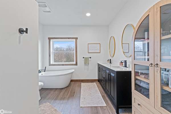 Discover a one-of-a-kind, 5-acre sanctuary in Worth County, where 2024 custom craftsmanship meets the serenity of private, natural surroundings. Nestled within the sought-after Northwood Public School district, this stunning new build offers a perfect blend of modern luxury and peaceful country living. This residence is a masterpiece of design and comfort, featuring a bright, open layout highlighted by beautiful windows. The gourmet kitchen, complete with high-end appliances, is an entertainer's dream, flowing seamlessly into the living spaces. The home includes four bedrooms, five bathrooms, a dedicated office, and an expansive master suite designed for ultimate relaxation. Premium amenities ensure year-round comfort and efficiency, including in-floor heating, a whole-home air filtration system, a tankless water heater, and a convenient three-stall garage. The property also features a prepped site for a 36x48 shop with plumbing already stubbed in, offering outstanding future potential. Property comes equipped with a fully stocked pond right out your backdoor. Perfect for year round fishing! Experience a rare standard of elegant, low-maintenance living in your own private retreat-a truly unmatched offering. Option to purchase additional 41.72 acres directly behind property.