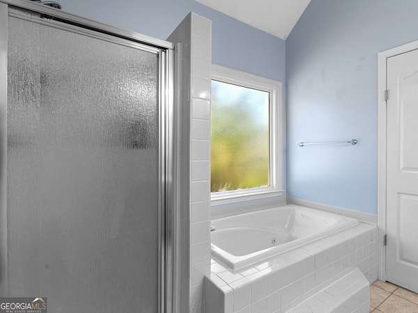 Double Vanity, Master On Main Level, Separate Shower, Soaking Tub, Split Bedroom Plan, Tile Bath, Tray Ceiling(s), Vaulted Ceiling(s), Walk-In Closet(s)