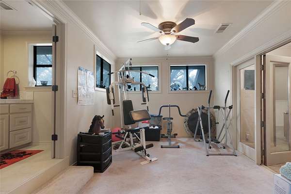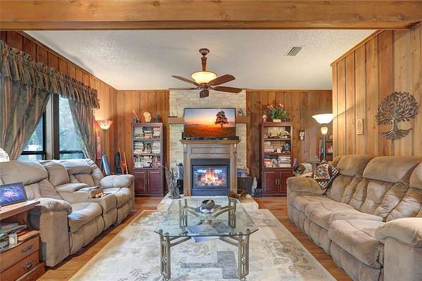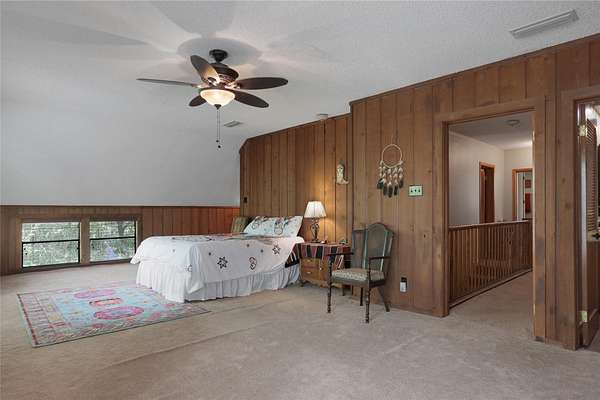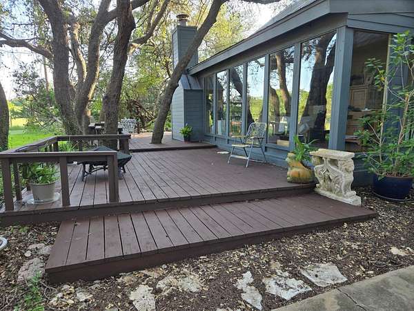 Nestled on 2.88 pristine acres of partially wooded land with open fields and pasture, this 3-4 bedroom home (3960SF) offers the perfect Hill Country retreat. Originally built as the builder's personal residence, it showcases custom details and luxury touches throughout--especially in the primary suite, designed as a private "spa" escape, complete with Walk-in shower and "Jacuzzi" spa tub. Upstairs features a huge second bedroom, two additional rooms (currently used as an office and exercise room), plus plenty of storage. An enclosed 363 SF sunroom is heated and cooled and is currently used as a relaxing massage suite. The great room welcomes you with rich wood paneling, exposed ceiling beams, and a warm, inviting atmosphere. Step outside to enjoy multiple outdoor living spaces: Canopy terrace with outdoor cooking & picnic area and the