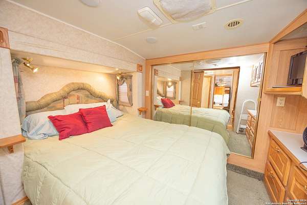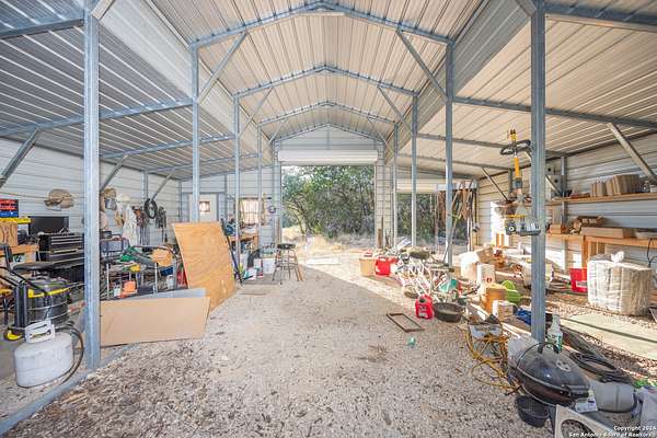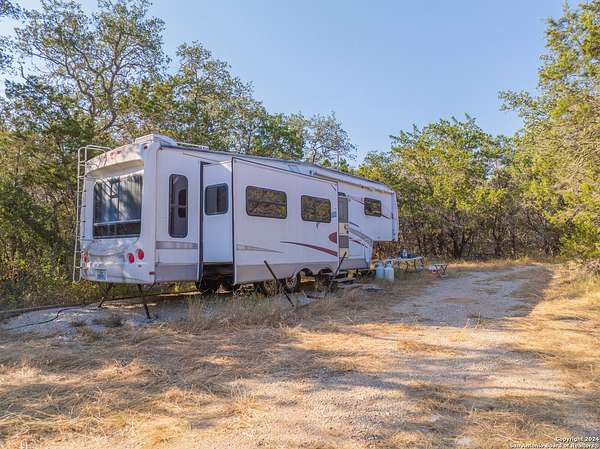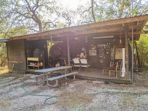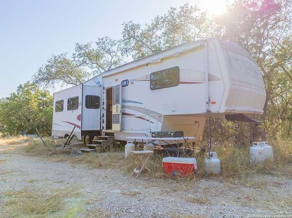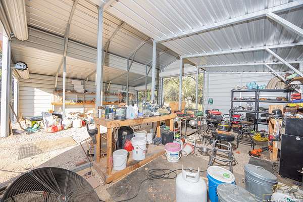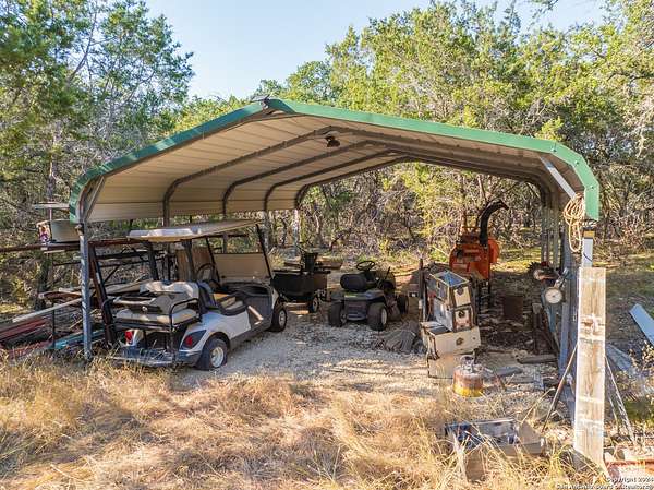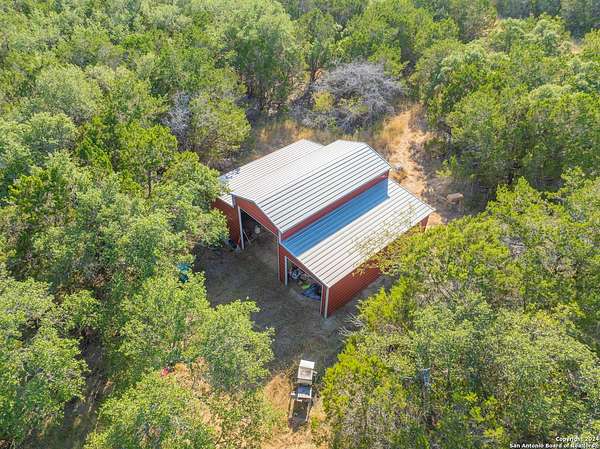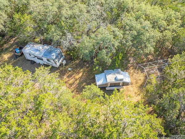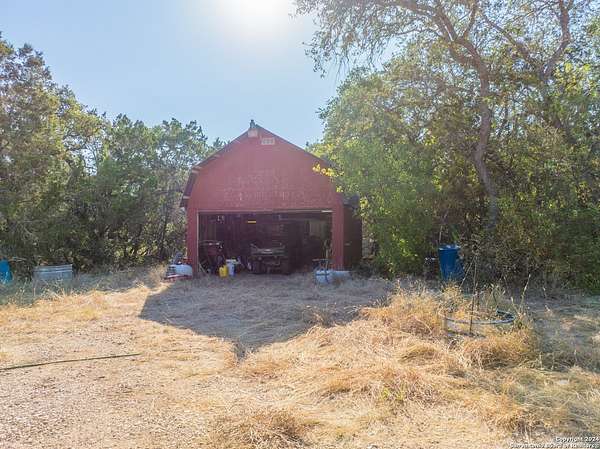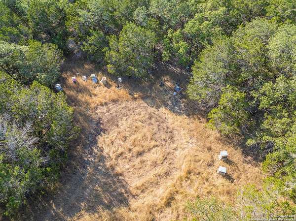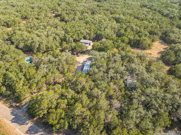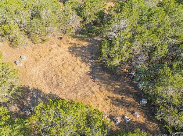 Est $1,955/mo20 acres fenced paved county road multiple entrances. Property is two separate tracts 10 acres each. The property is currently under agricultural exemption for bees. The bee hives will convey. The property is wooded with trails. There are two RVs and pop up tent camper that will convey with the property. Along with two barns, a tool shed, chicken coop, kennel, other outbuildings. Flat level terrain with grass mature trees a lot of natural brush for wildlife.