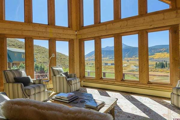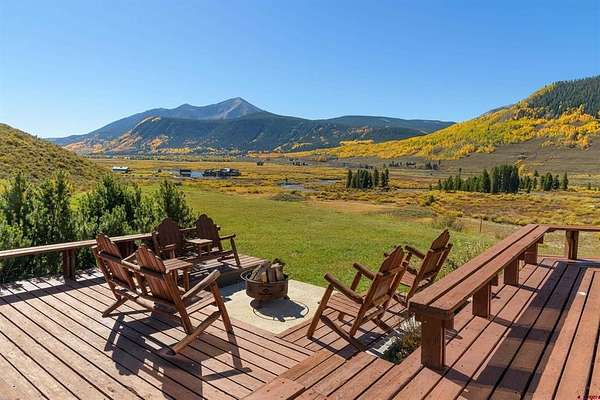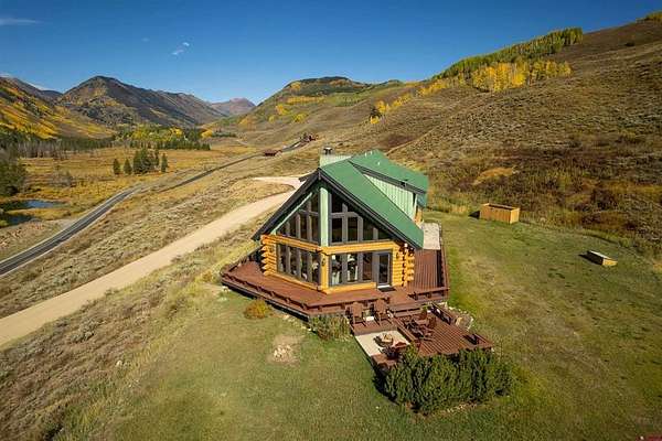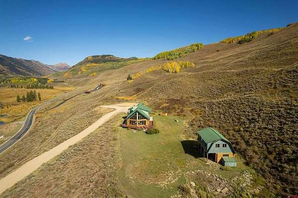 Joel Vosburg, Bluebird Real Estate, LLC, C: 970-209-1581, jvosburg@mountainoffice.com, www.crenmls.com: This is a very rare opportunity to own a larger parcel of land with a main residence and an accessory residence with no HOA and stunning views of the entire Crested Butte and Slate River valley. The 10.35 acres hillside setting overlooks open space, Peanut Lake, Mt. Whetstone, Mt. Emmons and the Oh-Be-Joyful recreation area. Enjoy southern and western exposure with windows from the floor to the top of vaulted ceilings for all day sun and beautiful sunsets. The home features 4 bedrooms including a large master suite with a private deck, 3 bathrooms, a game room and a wood burning fireplace as a focal point in the open great room. There is an additional loft space overlooking the living room that has a television. The open kitchen has granite countertops, newer appliances and lots of cabinets and storage. The home is being sold fully furnished excluding the artwork and a few personal items. The 608 square foot Guest house is a comfortable private space with a full kitchen, living area and includes 1 private bedroom and a 3/4 bath. Perfect for overflow guest space, a kids hangout are or even used for an on site caretaker. It is located above a clean and organized storage area/shop.There are trails on the property for horseback riding or hiking and very close access to popular mountain biking and hiking trails including Lupine, Gunsight and the Lower Loop. The expansive outdoor space includes a level grassy yard, large deck, and a fire pit all overlooking the meandering Slate River below. All this and only five minutes to the town of Crested Butte or the ski area.