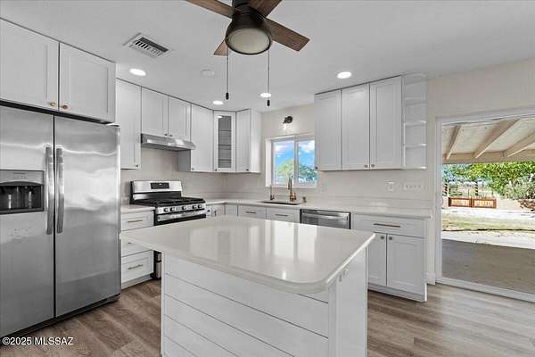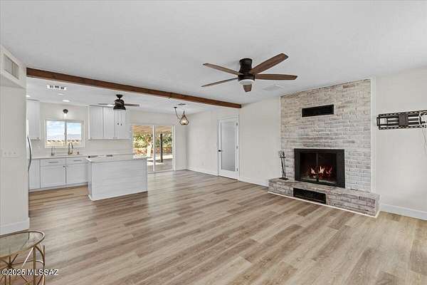 Welcome to this fully updated ranch-style home on 2.53 acres, offering 3 bedrooms, 2 baths, and a versatile bonus room perfect for a home office, guest space, or playroom. Inside, enjoy modern finishes throughout-including new windows and a durable metal roof-plus a cozy wood-burning fireplace that adds warmth and charm. The interior has been thoughtfully renovated from top to bottom for move-in-ready comfort. Step outside to covered patios in both the front and back, ideal for relaxing or entertaining year-round. The backyard is fully enclosed with a stucco wall for privacy, and a powered storage shed adds convenience for tools, hobbies, or extra storage. This property blends space, style, and flexibility in a peaceful setting