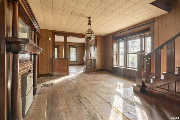 Discover the potential of this two-story, four-bedroom home on an expansive 21 acre-lot. This property offers plenty of space and potential, making it an ideal project for those looking to customize a home to suit their needs. The interior includes a kitchen with a pantry for storage and hardwood flooring throughout the home, and a solid foundation for customization and inprovement. Outside, there are several large pole barns that add significant value with approximately 6000 sqft, 2800 sqft and 1200 sqft of barn space, two 60x100 metal buildings, that can be for other uses that align your vision. Whether you need space for hobbies or business endeavors, these buildings offer plenty of options. The parcel will be surveyed. If you're looking for a project home, this could be the perfect opportunity!