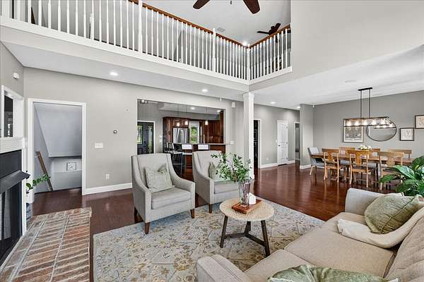 The main level offers a beautifully flowing floor plan, with a kitchen open to the dining and living areas, three bedrooms and two baths, including a serene primary suite. Upstairs, an open railing allows natural light and views to fill the second level, which includes two bedrooms, a full bath, and a versatile loft perfect for office, exercise, or play.